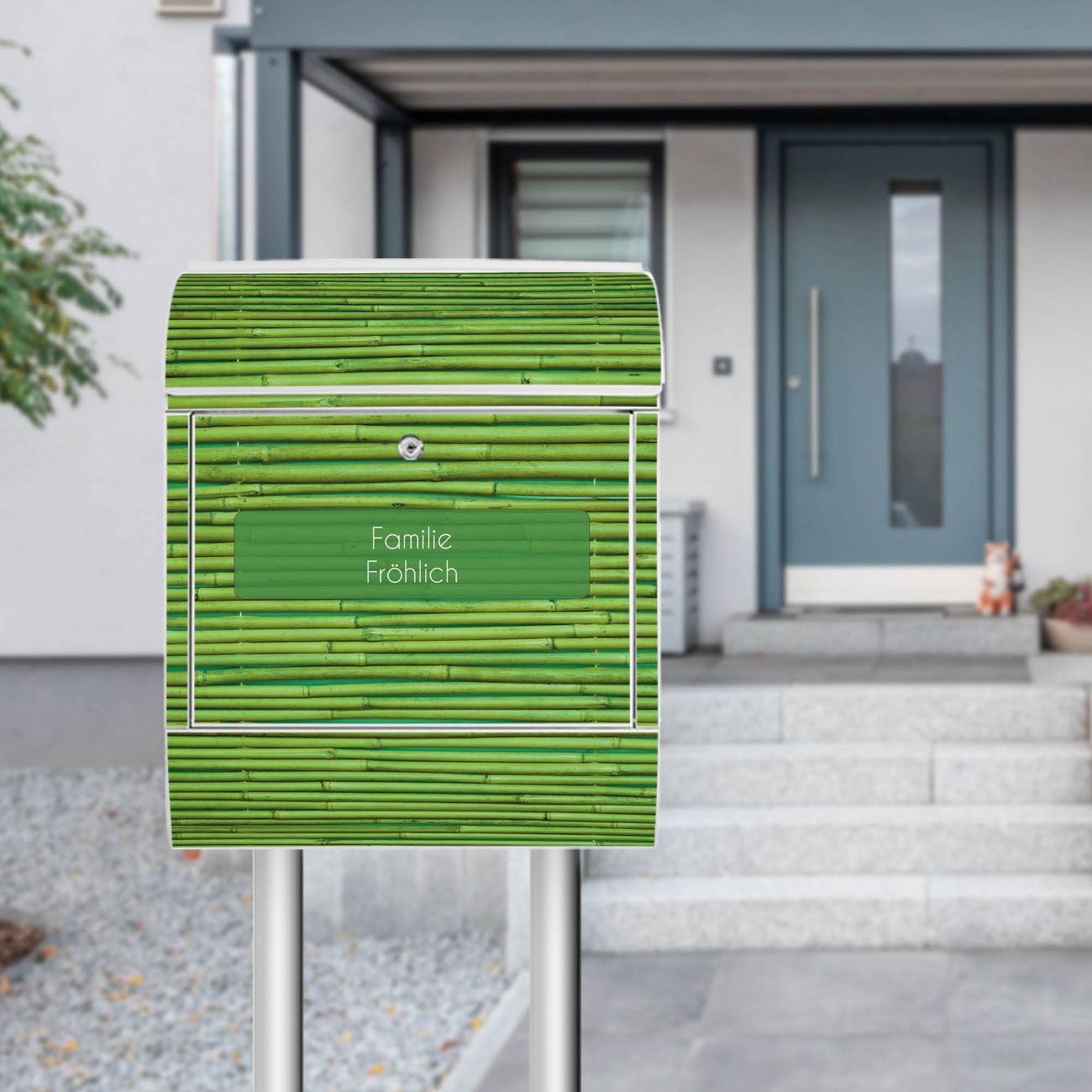 Standbriefkasten Stahl Bambus Grün