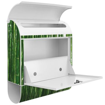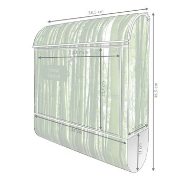 Der banjado Standbriefkasten mit Motiv Motiv Bambus kombiniert großzügigen Stauraum mit modernem Design. Durch das geräumige Fach finden auch große A4-Sendungen problemlos Platz. Die integrierte Zeitungsrolle sorgt dafür, dass Tageszeitungen und Magazine separat und griffbereit untergebracht sind. Der pulverbeschichtete Standfuß ist farblich passend zum Briefkasten gestaltet und sorgt für ein stimmiges Gesamtbild. Mit dem individuellen Motiv setzen Sie einen optischen Akzent, der sowohl praktisch als auch dekorativ ist.