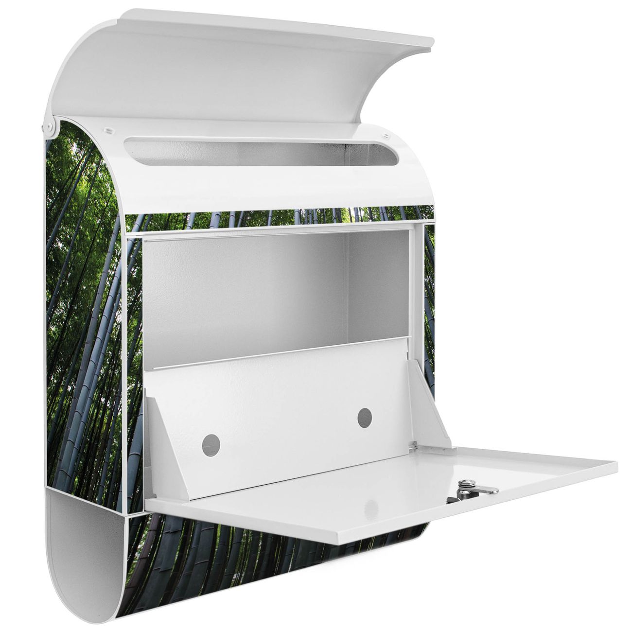 Der banjado Standbriefkasten mit Motiv Motiv Bambuswald kombiniert großzügigen Stauraum mit modernem Design. Durch das geräumige Fach finden auch große A4-Sendungen problemlos Platz. Die integrierte Zeitungsrolle sorgt dafür, dass Tageszeitungen und Magazine separat und griffbereit untergebracht sind. Der pulverbeschichtete Standfuß ist farblich passend zum Briefkasten gestaltet und sorgt für ein stimmiges Gesamtbild. Mit dem individuellen Motiv setzen Sie einen optischen Akzent, der sowohl praktisch als auch dekorativ ist.