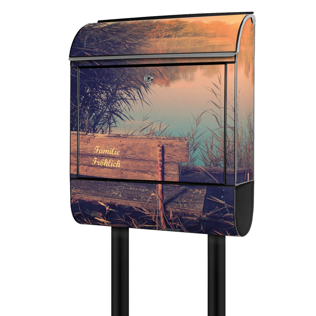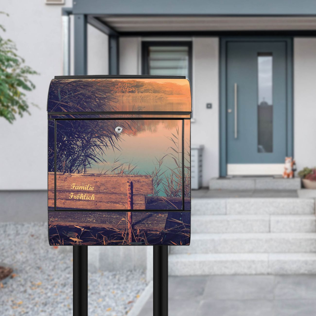 Der banjado Standbriefkasten mit Motiv Motiv Bank Am See kombiniert großzügigen Stauraum mit modernem Design. Durch das geräumige Fach finden auch große A4-Sendungen problemlos Platz. Die integrierte Zeitungsrolle sorgt dafür, dass Tageszeitungen und Magazine separat und griffbereit untergebracht sind. Der pulverbeschichtete Standfuß ist farblich passend zum Briefkasten gestaltet und sorgt für ein stimmiges Gesamtbild. Mit dem individuellen Motiv setzen Sie einen optischen Akzent, der sowohl praktisch als auch dekorativ ist.