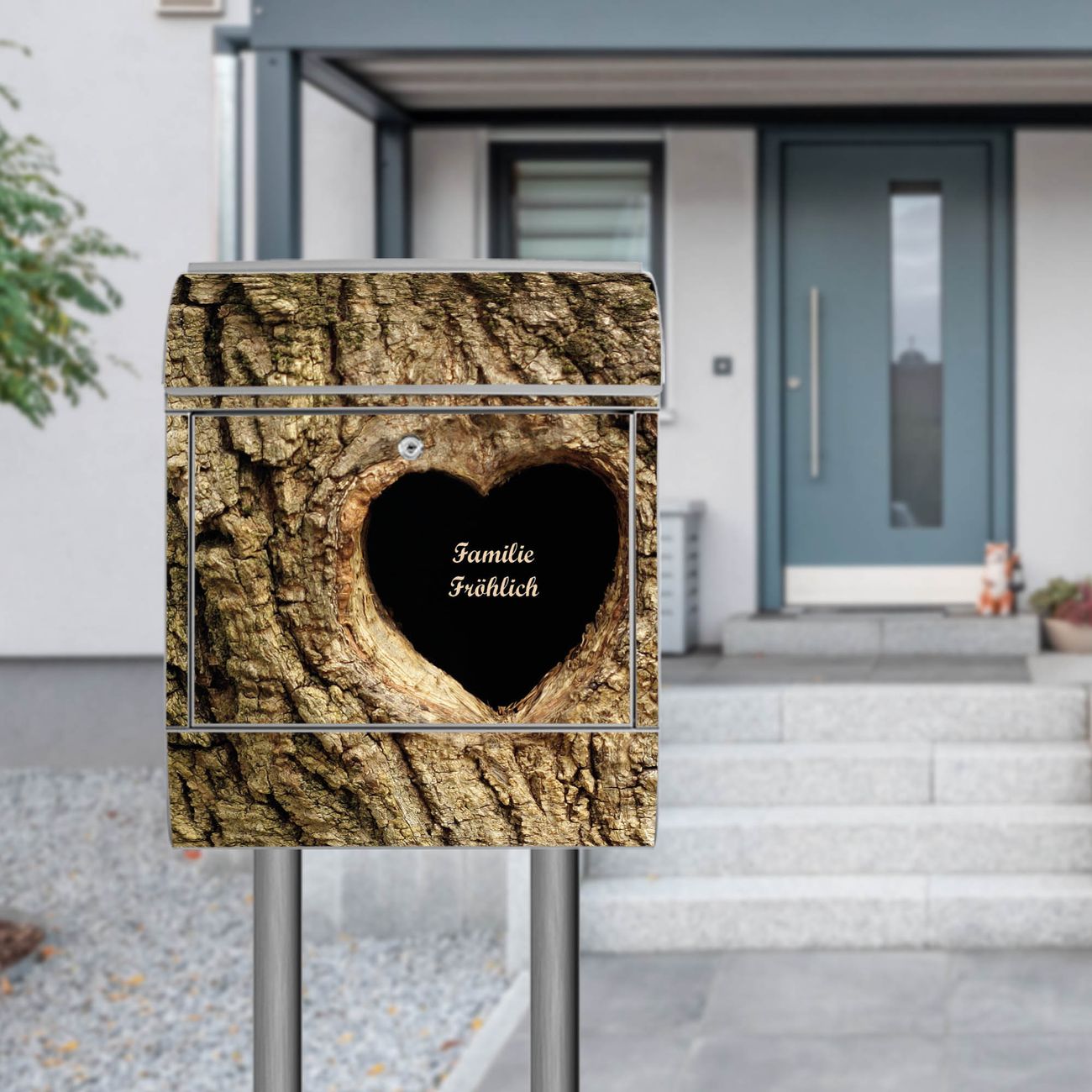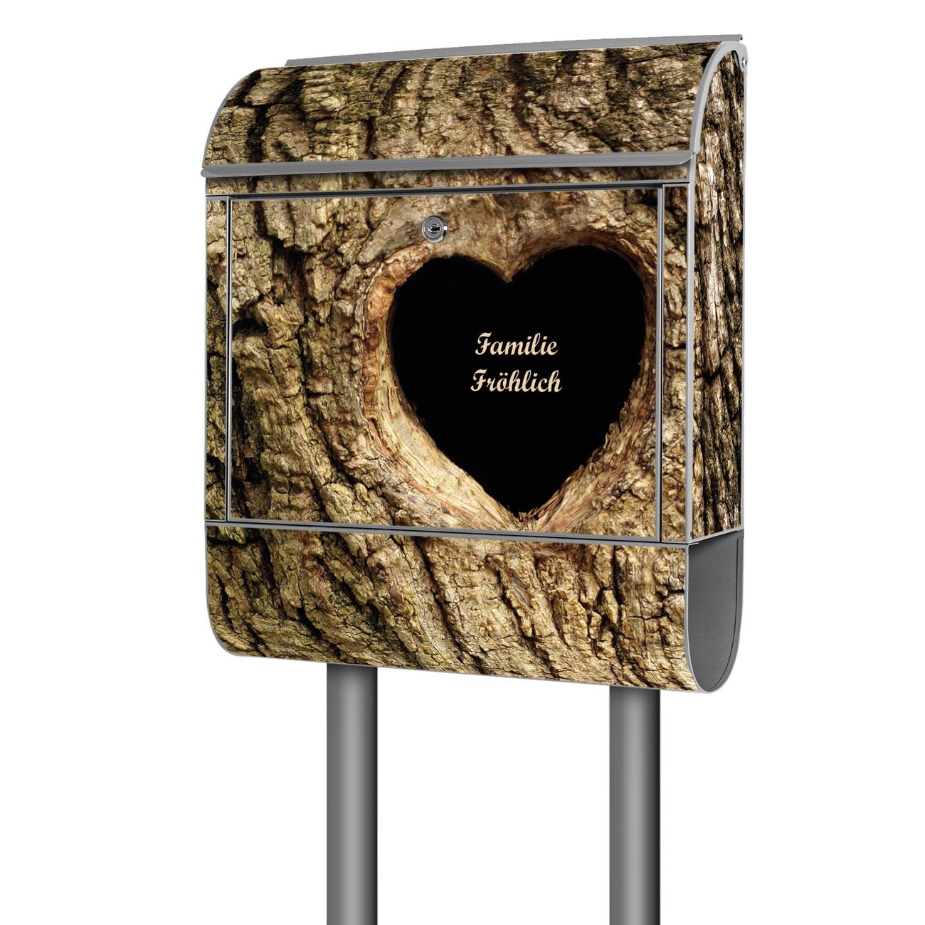 Der banjado Standbriefkasten mit Motiv Motiv Baumherz kombiniert großzügigen Stauraum mit modernem Design. Durch das geräumige Fach finden auch große A4-Sendungen problemlos Platz. Die integrierte Zeitungsrolle sorgt dafür, dass Tageszeitungen und Magazine separat und griffbereit untergebracht sind. Der pulverbeschichtete Standfuß ist farblich passend zum Briefkasten gestaltet und sorgt für ein stimmiges Gesamtbild. Mit dem individuellen Motiv setzen Sie einen optischen Akzent, der sowohl praktisch als auch dekorativ ist.
