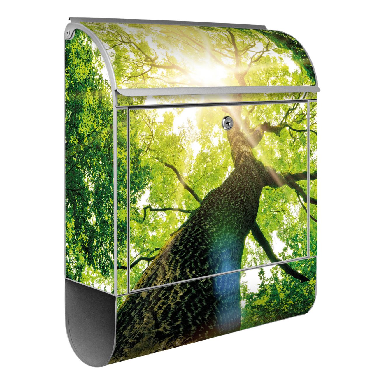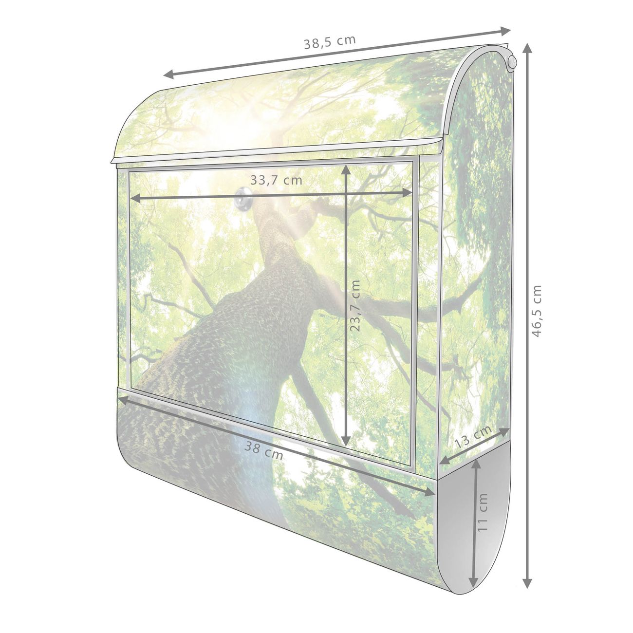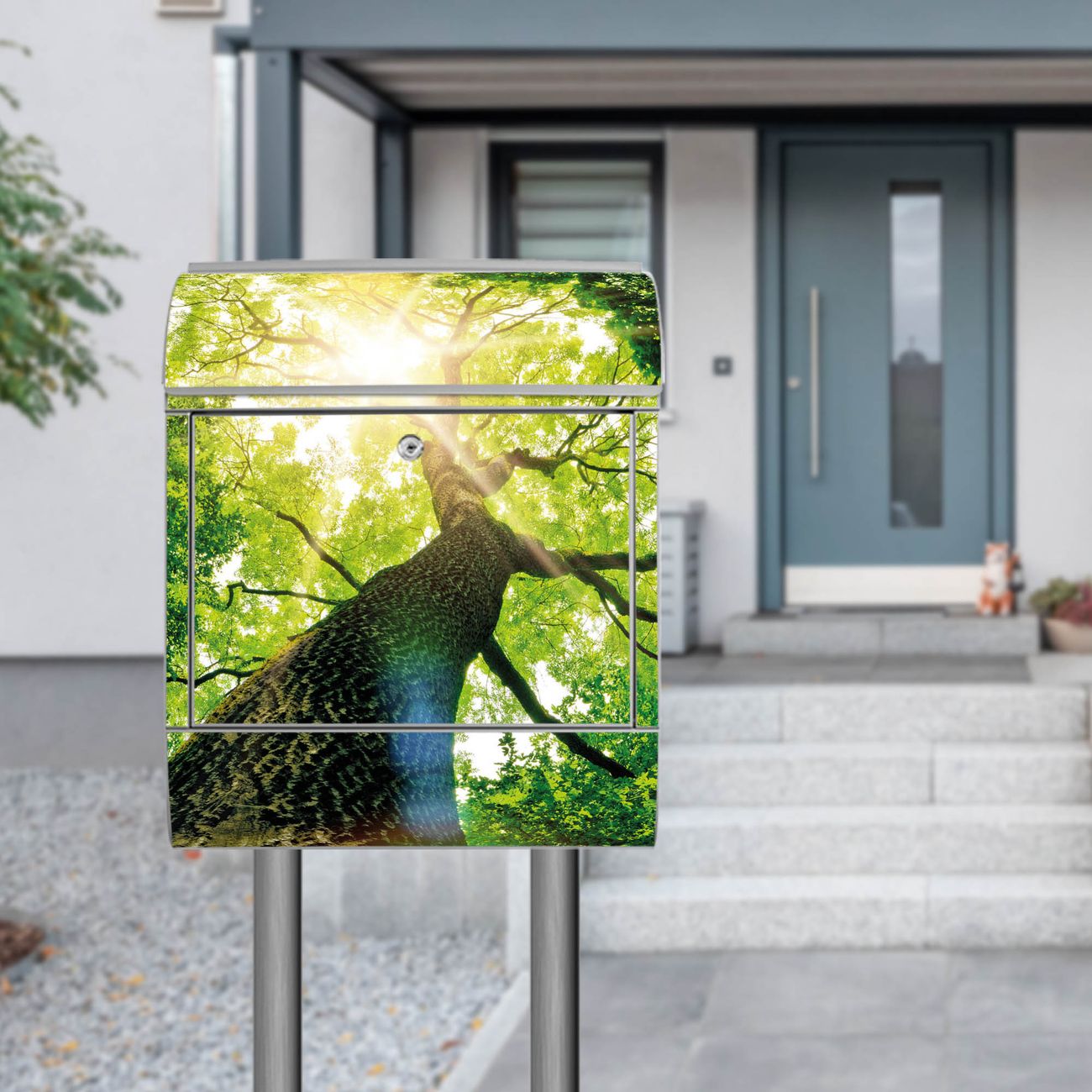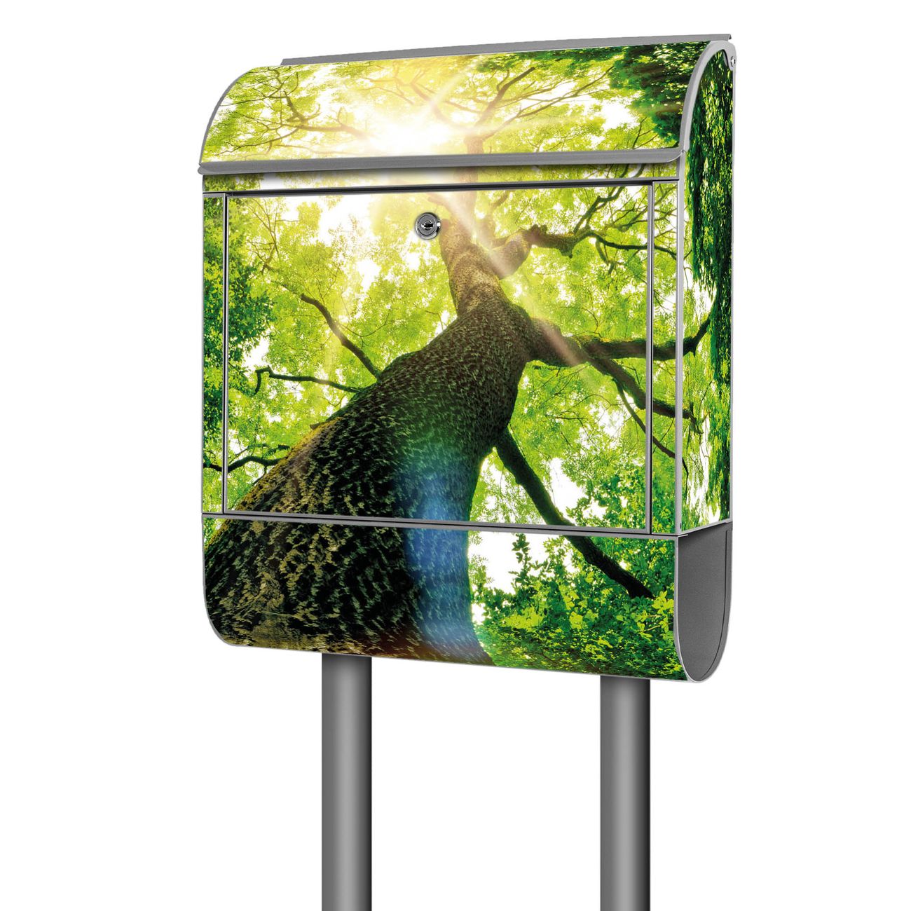 Der banjado Standbriefkasten mit Motiv Motiv Baumkrone kombiniert großzügigen Stauraum mit modernem Design. Durch das geräumige Fach finden auch große A4-Sendungen problemlos Platz. Die integrierte Zeitungsrolle sorgt dafür, dass Tageszeitungen und Magazine separat und griffbereit untergebracht sind. Der pulverbeschichtete Standfuß ist farblich passend zum Briefkasten gestaltet und sorgt für ein stimmiges Gesamtbild. Mit dem individuellen Motiv setzen Sie einen optischen Akzent, der sowohl praktisch als auch dekorativ ist.