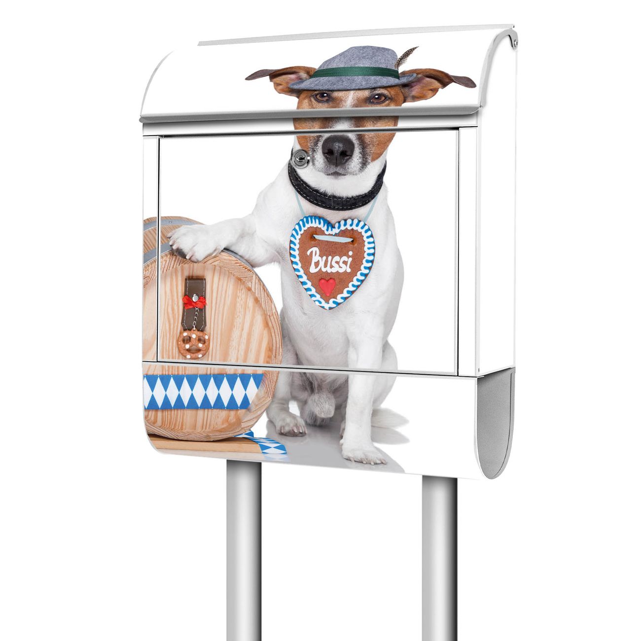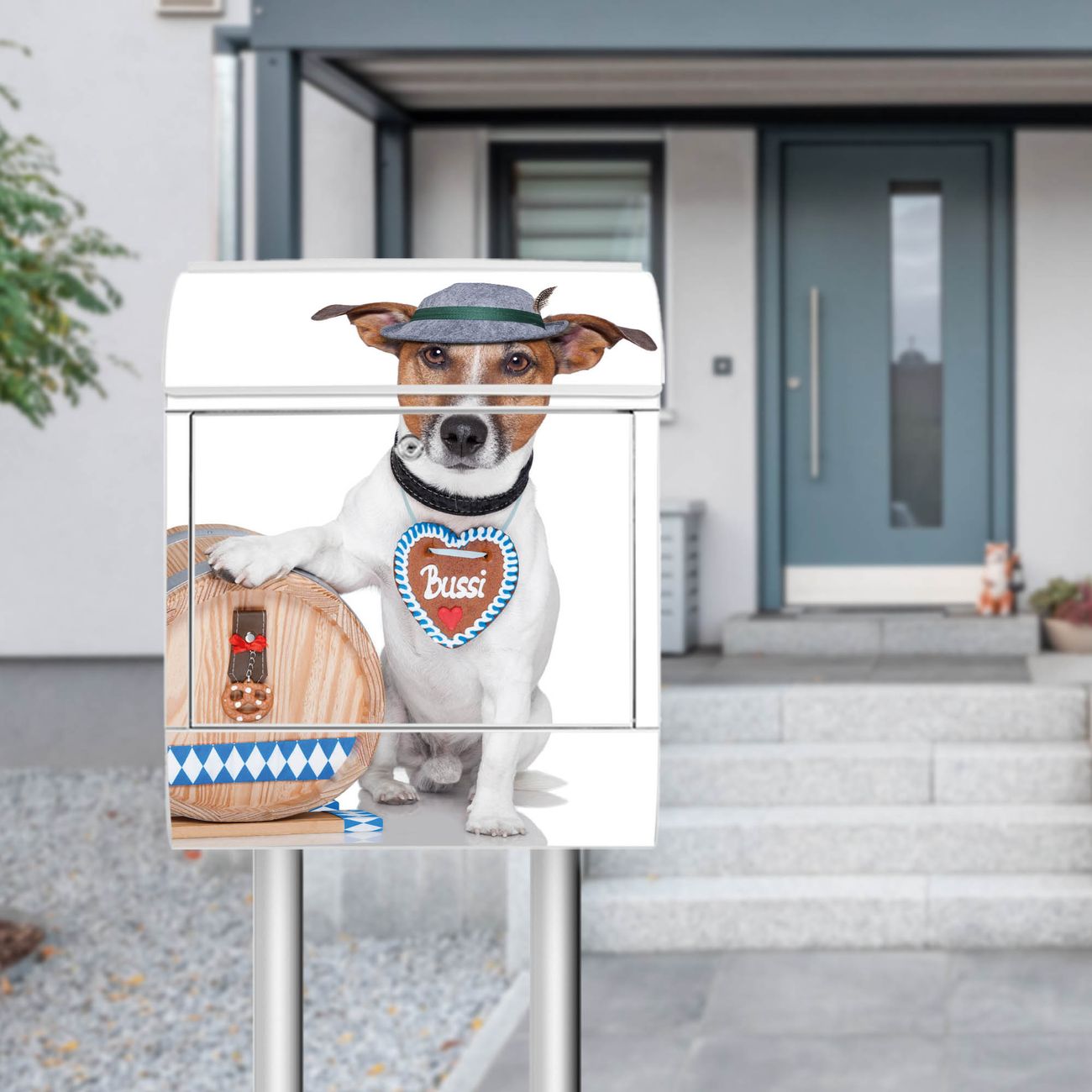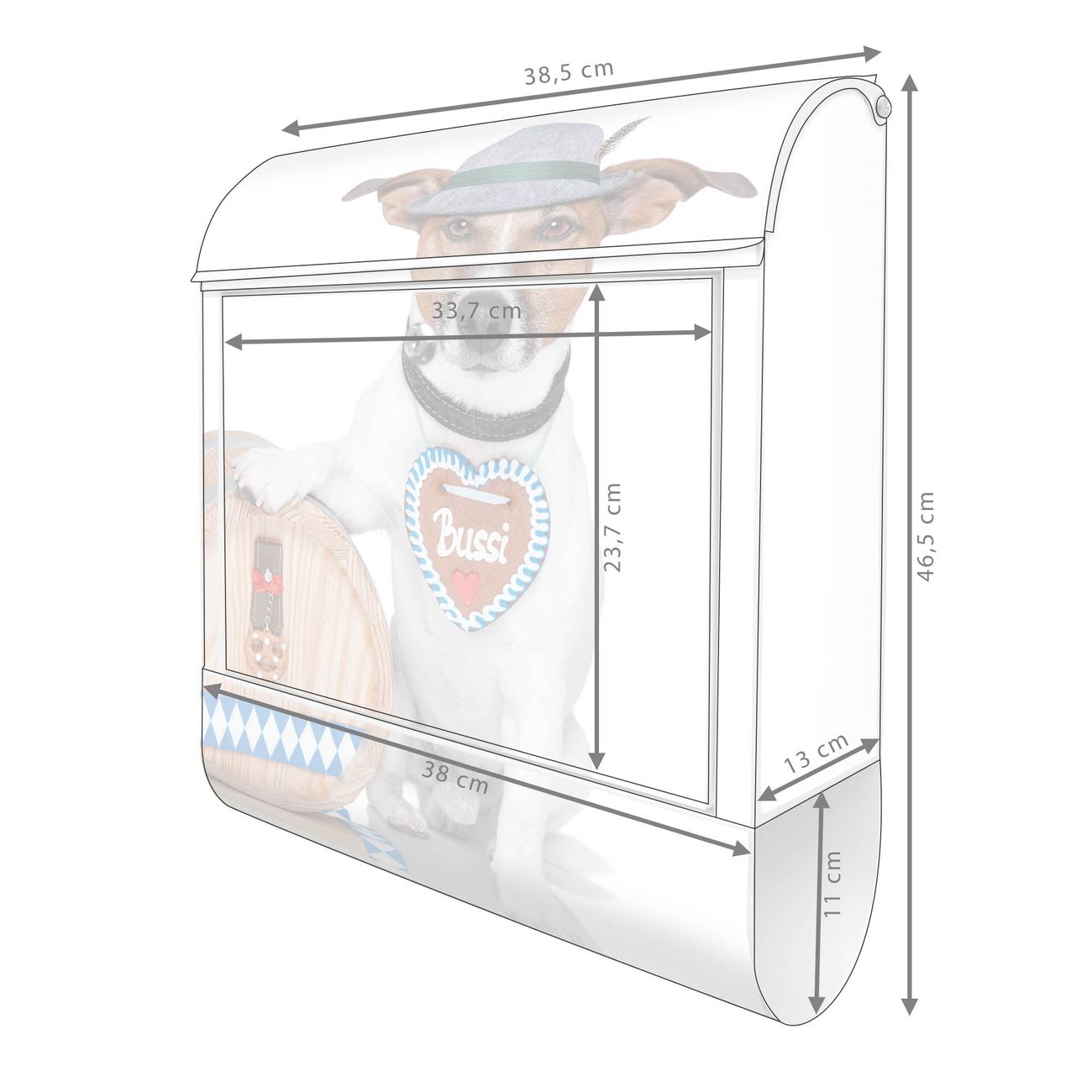 Der banjado Standbriefkasten mit Motiv Motiv Bayer Jack Russel kombiniert großzügigen Stauraum mit modernem Design. Durch das geräumige Fach finden auch große A4-Sendungen problemlos Platz. Die integrierte Zeitungsrolle sorgt dafür, dass Tageszeitungen und Magazine separat und griffbereit untergebracht sind. Der pulverbeschichtete Standfuß ist farblich passend zum Briefkasten gestaltet und sorgt für ein stimmiges Gesamtbild. Mit dem individuellen Motiv setzen Sie einen optischen Akzent, der sowohl praktisch als auch dekorativ ist.