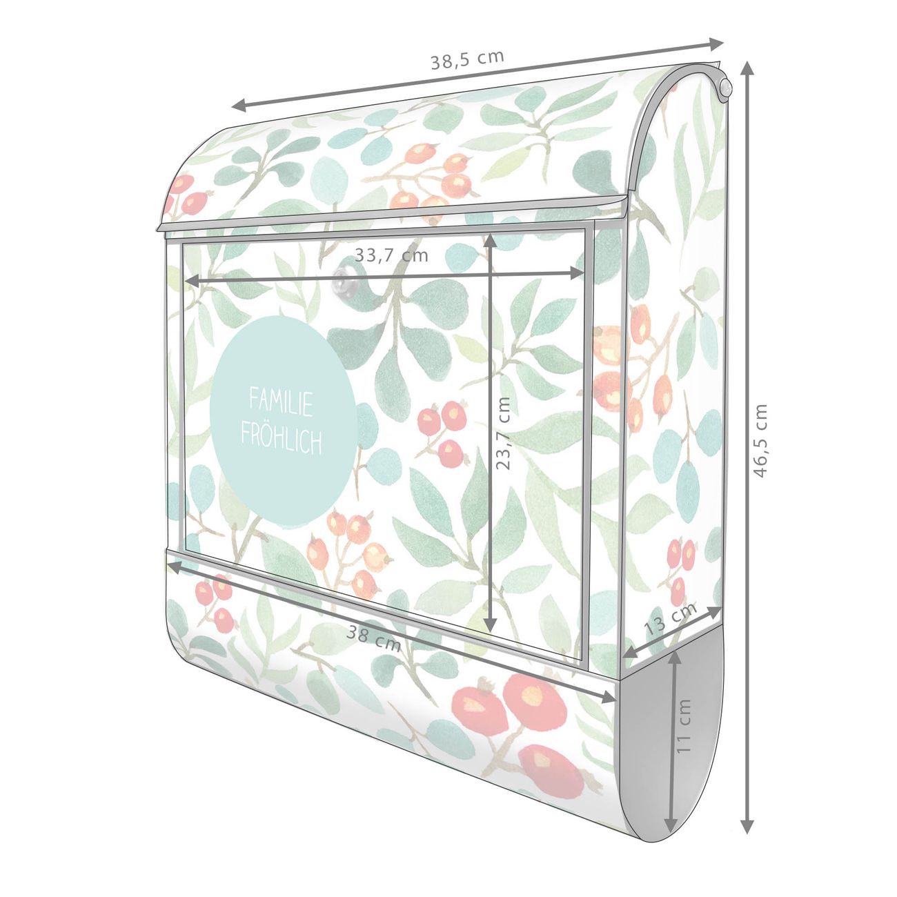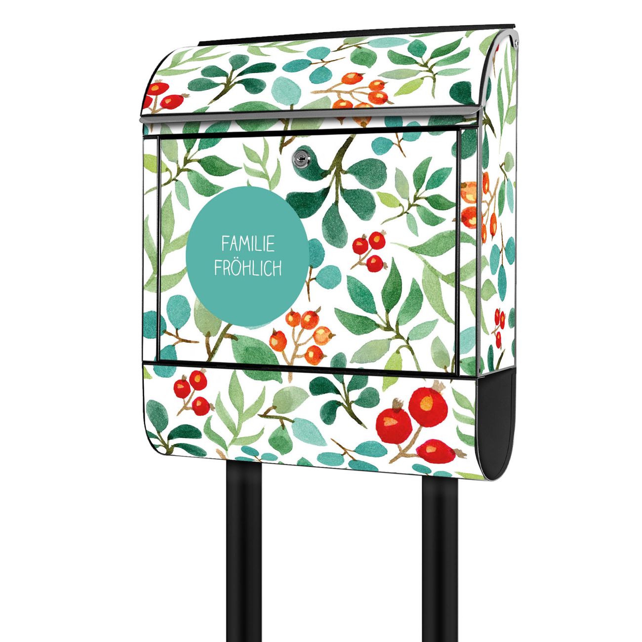 Der banjado Standbriefkasten mit Motiv Motiv Beeren und Blätter kombiniert großzügigen Stauraum mit modernem Design. Durch das geräumige Fach finden auch große A4-Sendungen problemlos Platz. Die integrierte Zeitungsrolle sorgt dafür, dass Tageszeitungen und Magazine separat und griffbereit untergebracht sind. Der pulverbeschichtete Standfuß ist farblich passend zum Briefkasten gestaltet und sorgt für ein stimmiges Gesamtbild. Mit dem individuellen Motiv setzen Sie einen optischen Akzent, der sowohl praktisch als auch dekorativ ist.