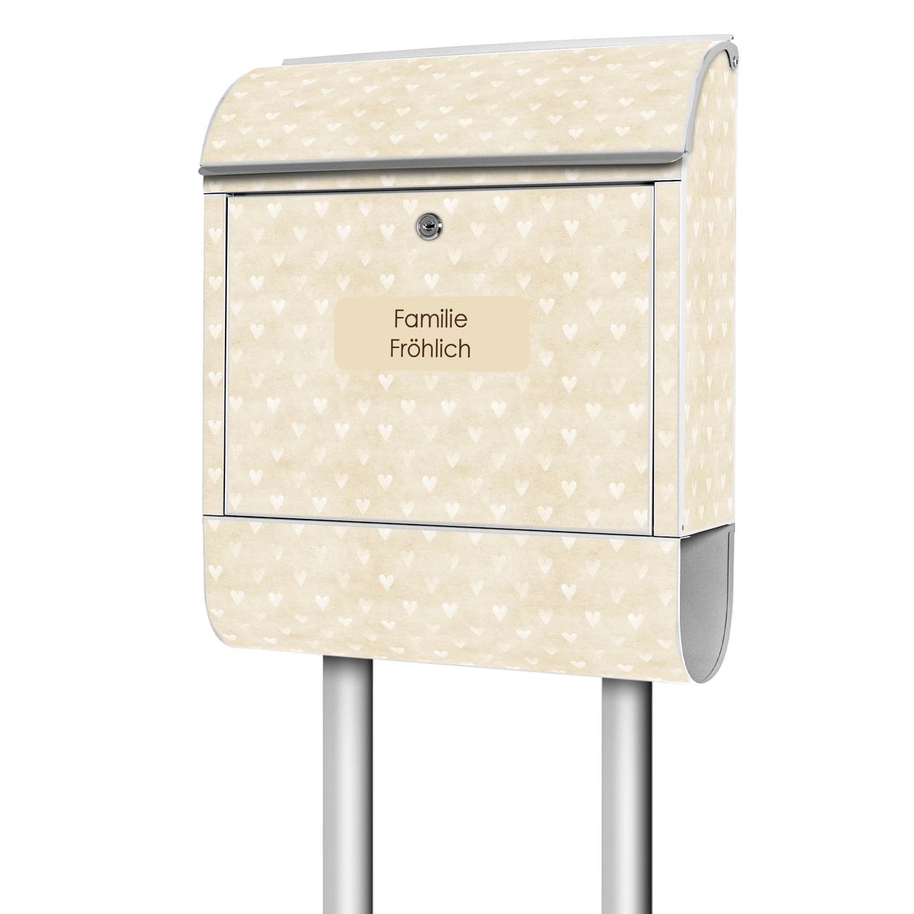 Standbriefkasten Stahl Beige Herzen