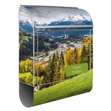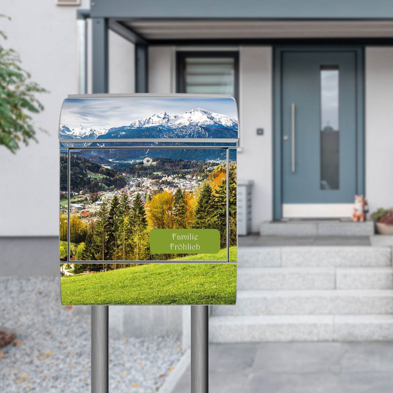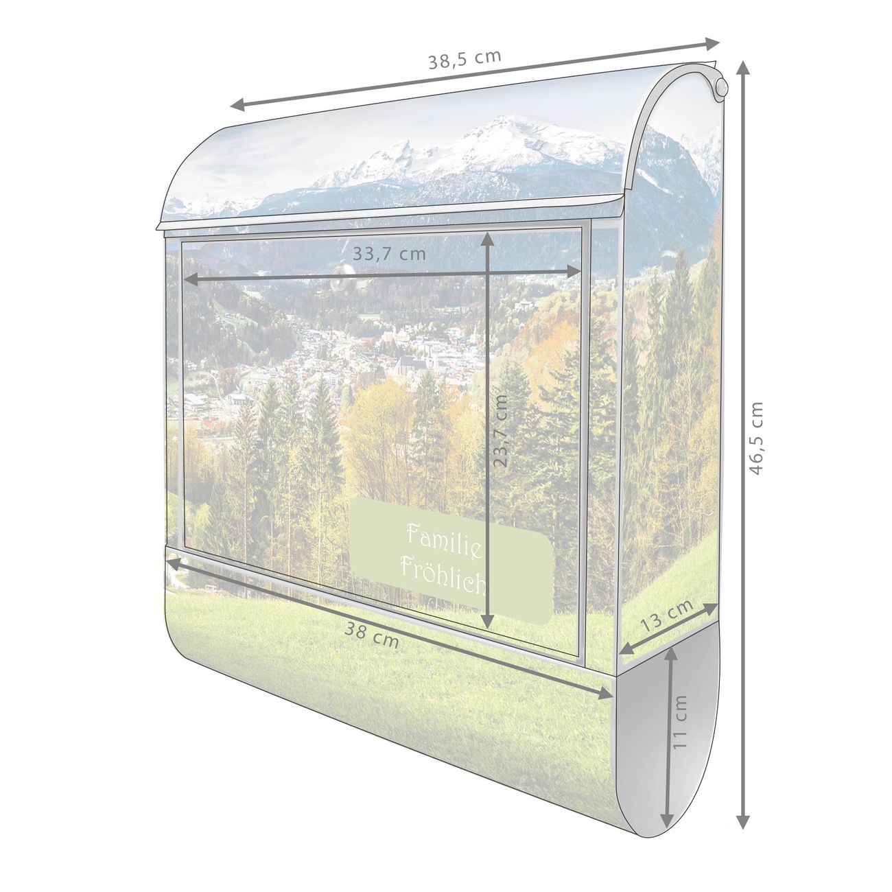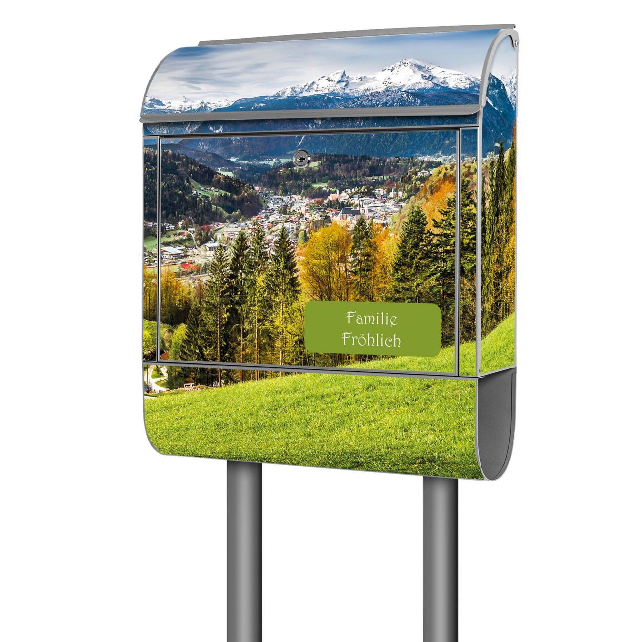 Der banjado Standbriefkasten mit Motiv Motiv Berchtesgadener Land kombiniert großzügigen Stauraum mit modernem Design. Durch das geräumige Fach finden auch große A4-Sendungen problemlos Platz. Die integrierte Zeitungsrolle sorgt dafür, dass Tageszeitungen und Magazine separat und griffbereit untergebracht sind. Der pulverbeschichtete Standfuß ist farblich passend zum Briefkasten gestaltet und sorgt für ein stimmiges Gesamtbild. Mit dem individuellen Motiv setzen Sie einen optischen Akzent, der sowohl praktisch als auch dekorativ ist.