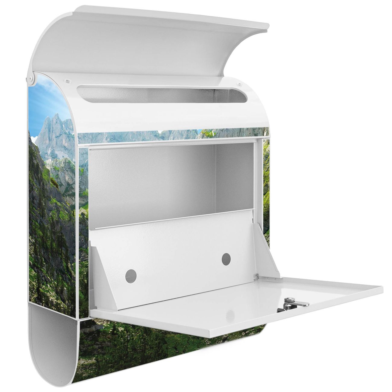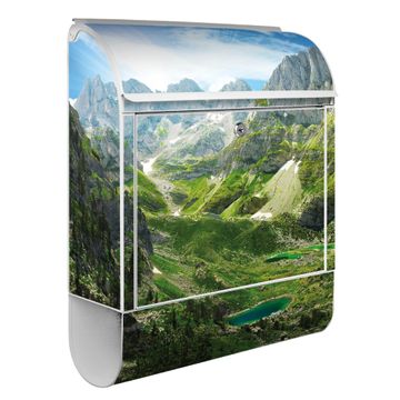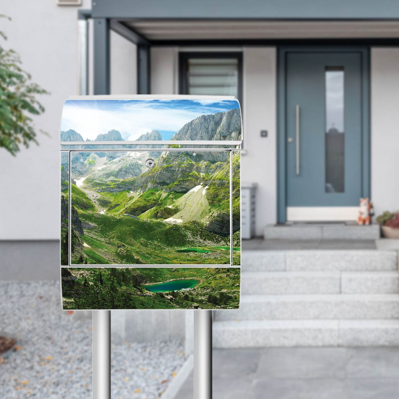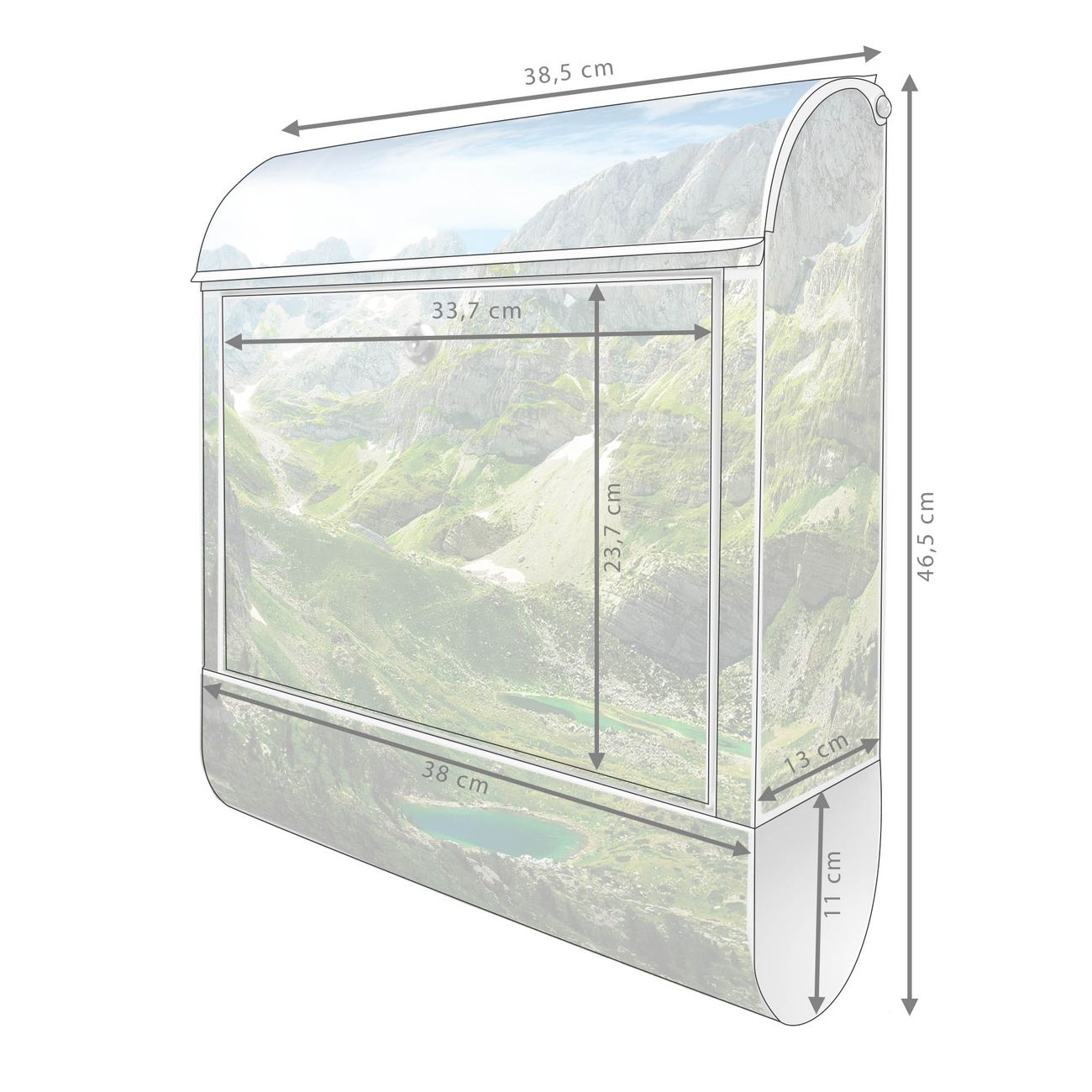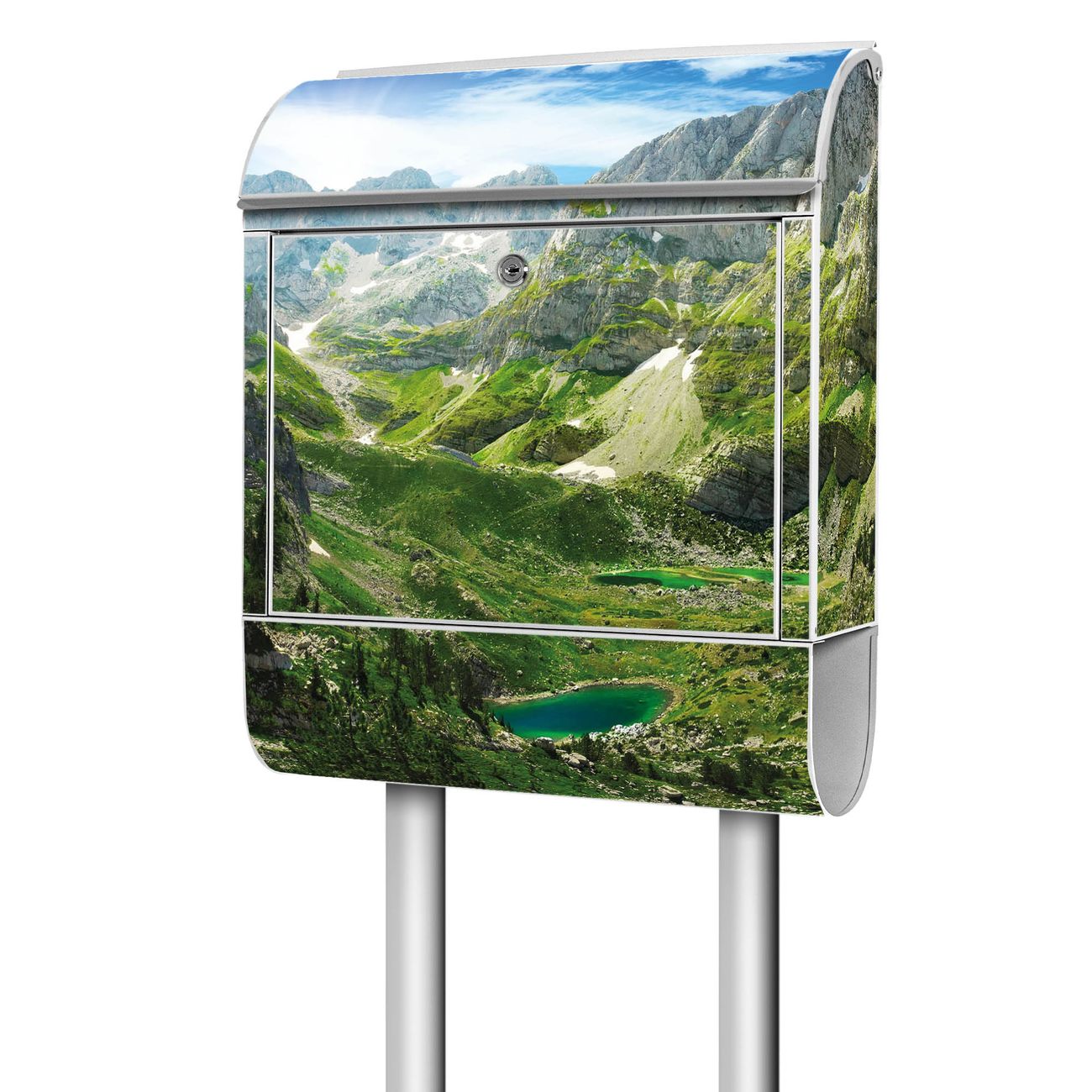 Der banjado Standbriefkasten mit Motiv Motiv Bergsee Alpen kombiniert großzügigen Stauraum mit modernem Design. Durch das geräumige Fach finden auch große A4-Sendungen problemlos Platz. Die integrierte Zeitungsrolle sorgt dafür, dass Tageszeitungen und Magazine separat und griffbereit untergebracht sind. Der pulverbeschichtete Standfuß ist farblich passend zum Briefkasten gestaltet und sorgt für ein stimmiges Gesamtbild. Mit dem individuellen Motiv setzen Sie einen optischen Akzent, der sowohl praktisch als auch dekorativ ist.