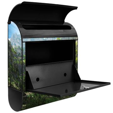 Der banjado Standbriefkasten mit Motiv Motiv Bergsee Alpen kombiniert großzügigen Stauraum mit modernem Design. Durch das geräumige Fach finden auch große A4-Sendungen problemlos Platz. Die integrierte Zeitungsrolle sorgt dafür, dass Tageszeitungen und Magazine separat und griffbereit untergebracht sind. Der pulverbeschichtete Standfuß ist farblich passend zum Briefkasten gestaltet und sorgt für ein stimmiges Gesamtbild. Mit dem individuellen Motiv setzen Sie einen optischen Akzent, der sowohl praktisch als auch dekorativ ist.