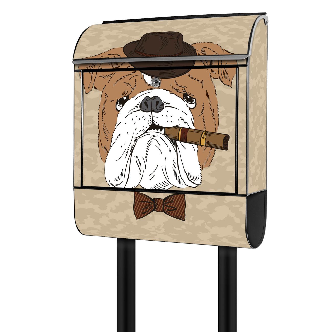 Der banjado Standbriefkasten mit Motiv Motiv Big Daddy kombiniert großzügigen Stauraum mit modernem Design. Durch das geräumige Fach finden auch große A4-Sendungen problemlos Platz. Die integrierte Zeitungsrolle sorgt dafür, dass Tageszeitungen und Magazine separat und griffbereit untergebracht sind. Der pulverbeschichtete Standfuß ist farblich passend zum Briefkasten gestaltet und sorgt für ein stimmiges Gesamtbild. Mit dem individuellen Motiv setzen Sie einen optischen Akzent, der sowohl praktisch als auch dekorativ ist.