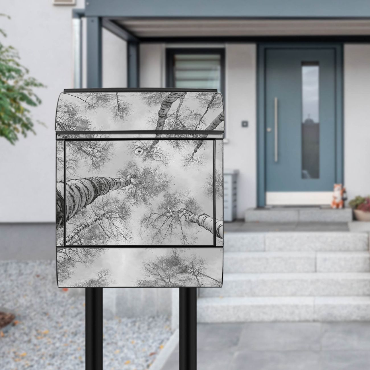 Der banjado Standbriefkasten mit Motiv Motiv Birkenwald kombiniert großzügigen Stauraum mit modernem Design. Durch das geräumige Fach finden auch große A4-Sendungen problemlos Platz. Die integrierte Zeitungsrolle sorgt dafür, dass Tageszeitungen und Magazine separat und griffbereit untergebracht sind. Der pulverbeschichtete Standfuß ist farblich passend zum Briefkasten gestaltet und sorgt für ein stimmiges Gesamtbild. Mit dem individuellen Motiv setzen Sie einen optischen Akzent, der sowohl praktisch als auch dekorativ ist.