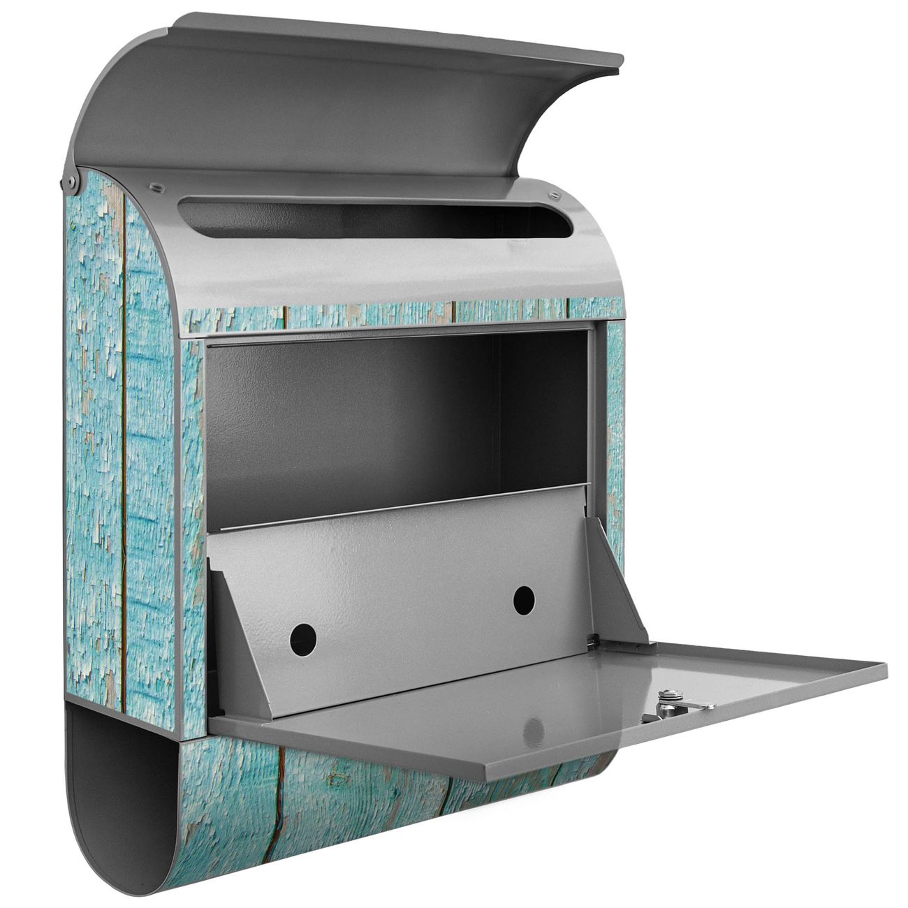 Der banjado Standbriefkasten mit Motiv Motiv Blaue Planken kombiniert großzügigen Stauraum mit modernem Design. Durch das geräumige Fach finden auch große A4-Sendungen problemlos Platz. Die integrierte Zeitungsrolle sorgt dafür, dass Tageszeitungen und Magazine separat und griffbereit untergebracht sind. Der pulverbeschichtete Standfuß ist farblich passend zum Briefkasten gestaltet und sorgt für ein stimmiges Gesamtbild. Mit dem individuellen Motiv setzen Sie einen optischen Akzent, der sowohl praktisch als auch dekorativ ist.