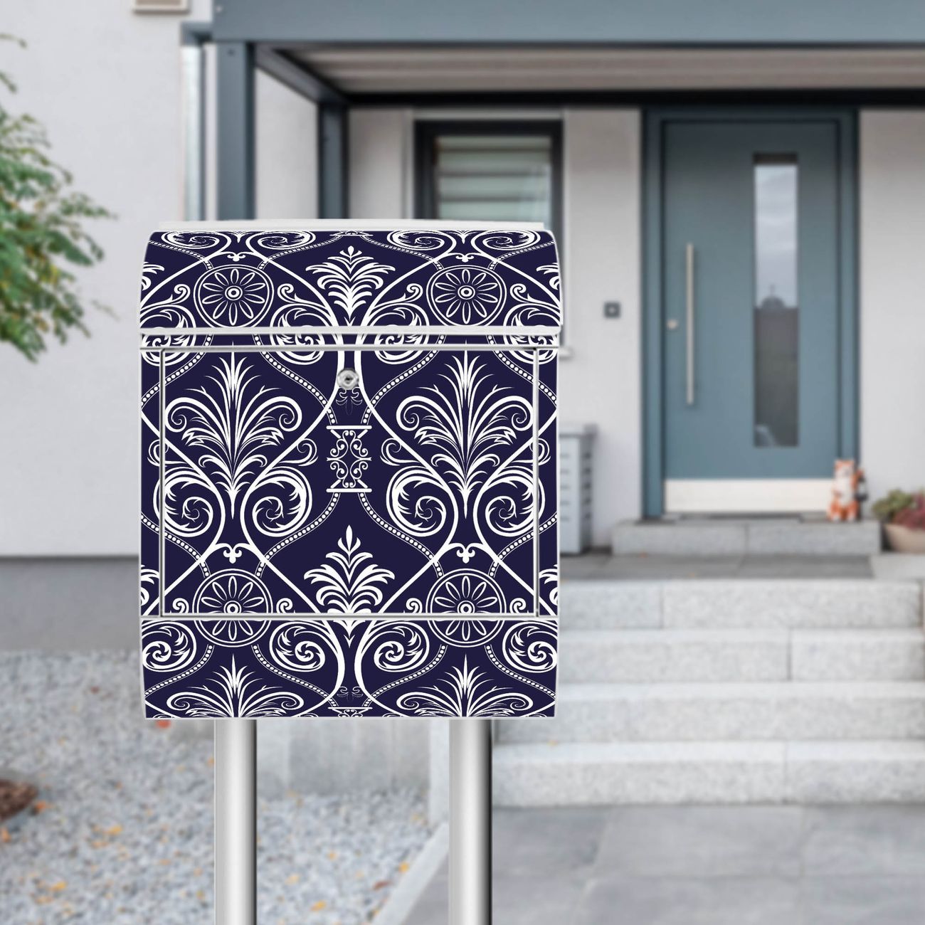 Standbriefkasten Stahl Blaue Tapete