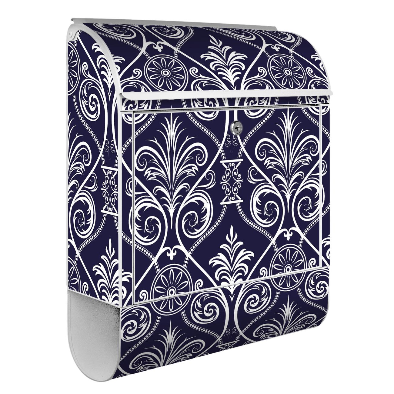 Der banjado Standbriefkasten mit Motiv Motiv Blaue Tapete kombiniert großzügigen Stauraum mit modernem Design. Durch das geräumige Fach finden auch große A4-Sendungen problemlos Platz. Die integrierte Zeitungsrolle sorgt dafür, dass Tageszeitungen und Magazine separat und griffbereit untergebracht sind. Der pulverbeschichtete Standfuß ist farblich passend zum Briefkasten gestaltet und sorgt für ein stimmiges Gesamtbild. Mit dem individuellen Motiv setzen Sie einen optischen Akzent, der sowohl praktisch als auch dekorativ ist.