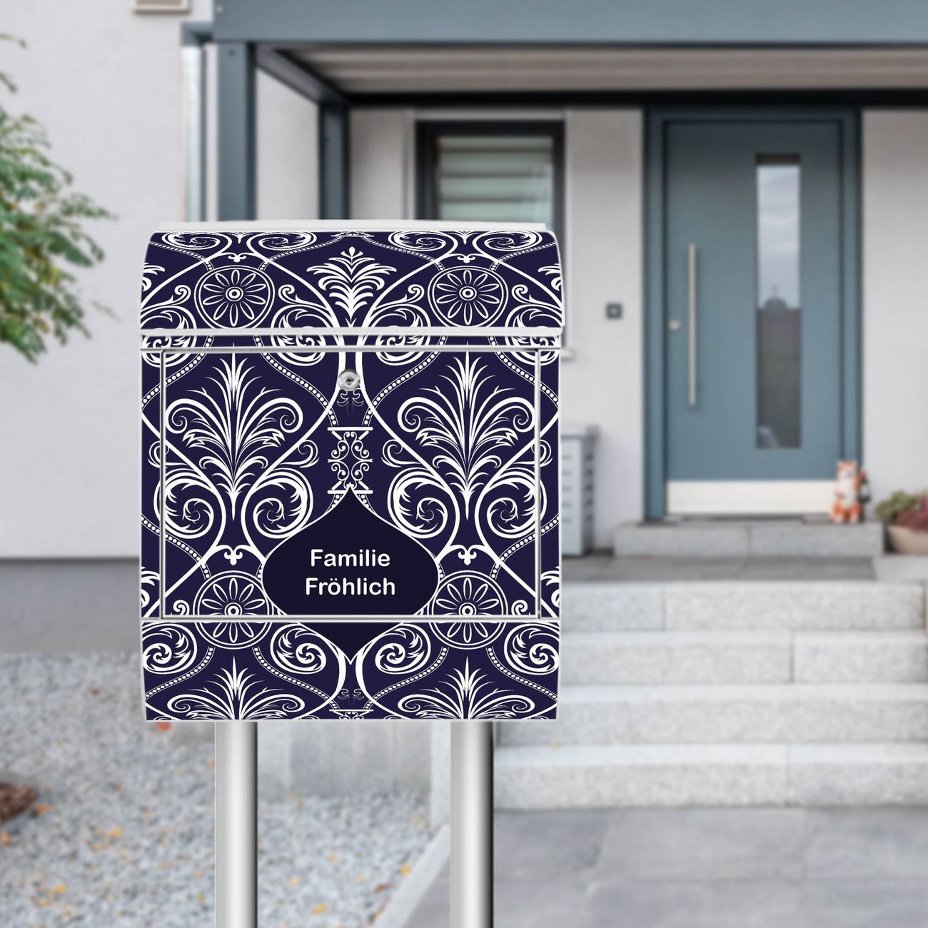 Standbriefkasten Stahl Blaue Tapete