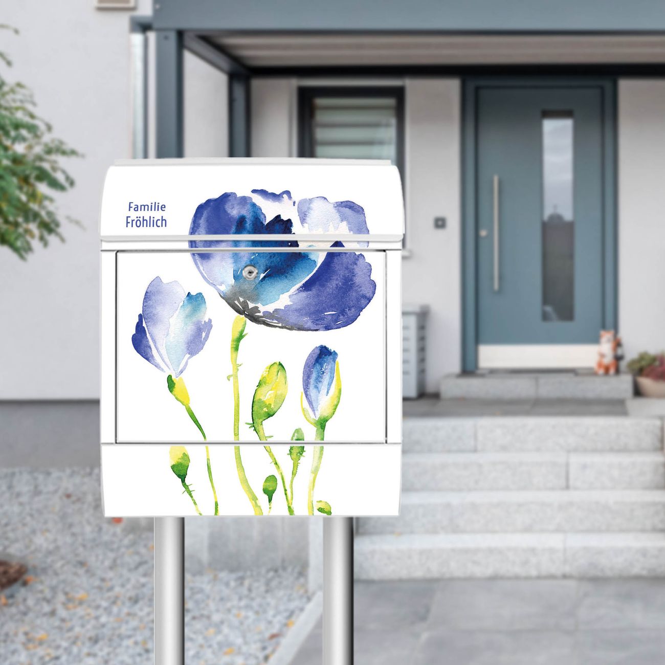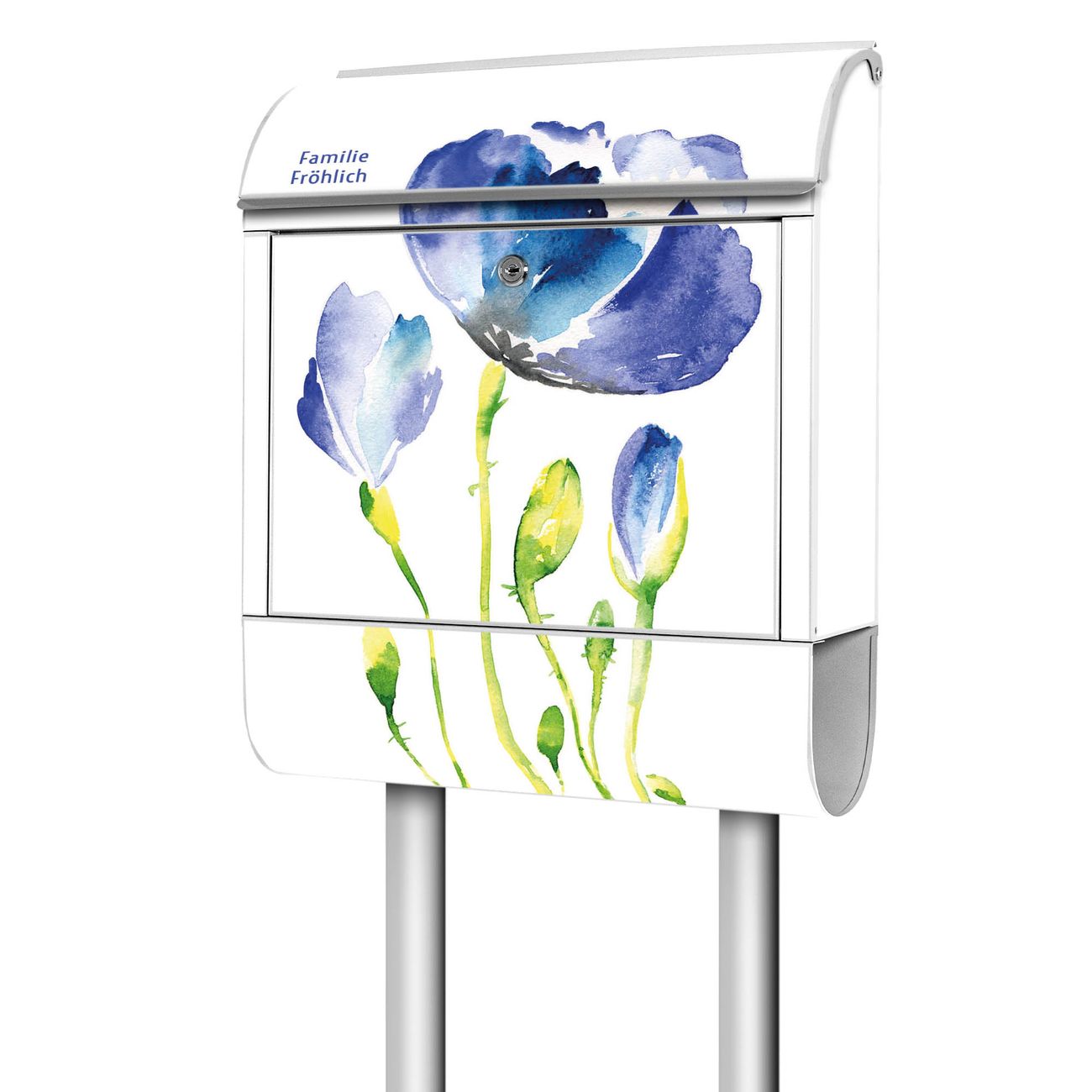 Standbriefkasten Stahl Blauer Mohn