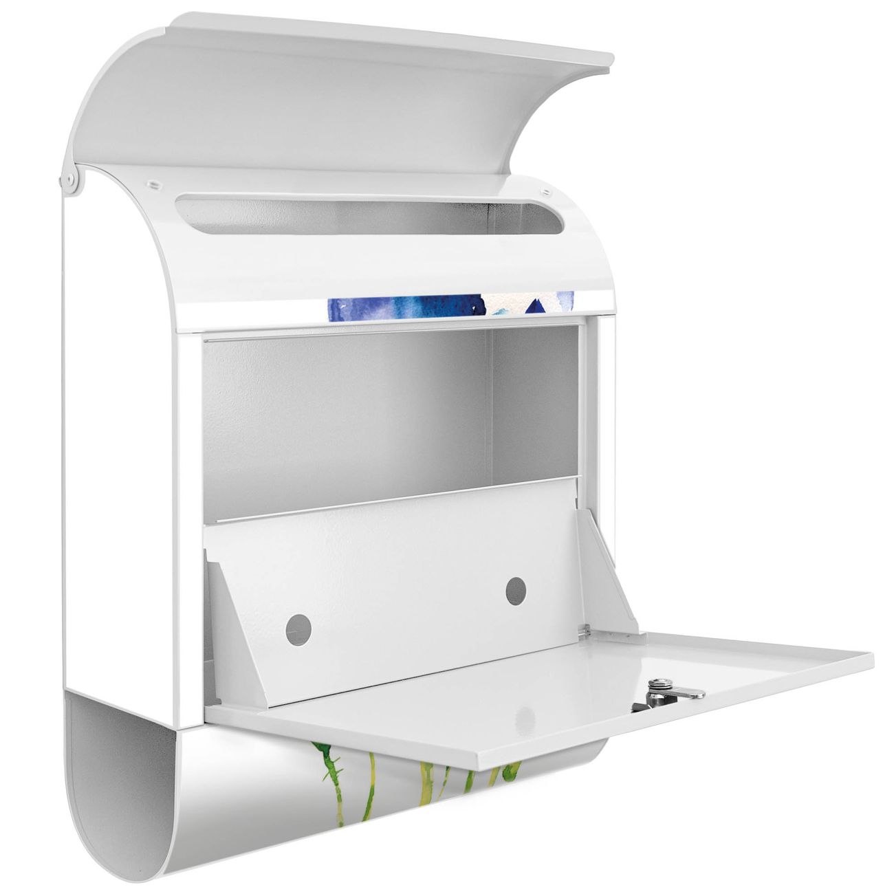 Der banjado Standbriefkasten mit Motiv Motiv Blauer Mohn kombiniert großzügigen Stauraum mit modernem Design. Durch das geräumige Fach finden auch große A4-Sendungen problemlos Platz. Die integrierte Zeitungsrolle sorgt dafür, dass Tageszeitungen und Magazine separat und griffbereit untergebracht sind. Der pulverbeschichtete Standfuß ist farblich passend zum Briefkasten gestaltet und sorgt für ein stimmiges Gesamtbild. Mit dem individuellen Motiv setzen Sie einen optischen Akzent, der sowohl praktisch als auch dekorativ ist.