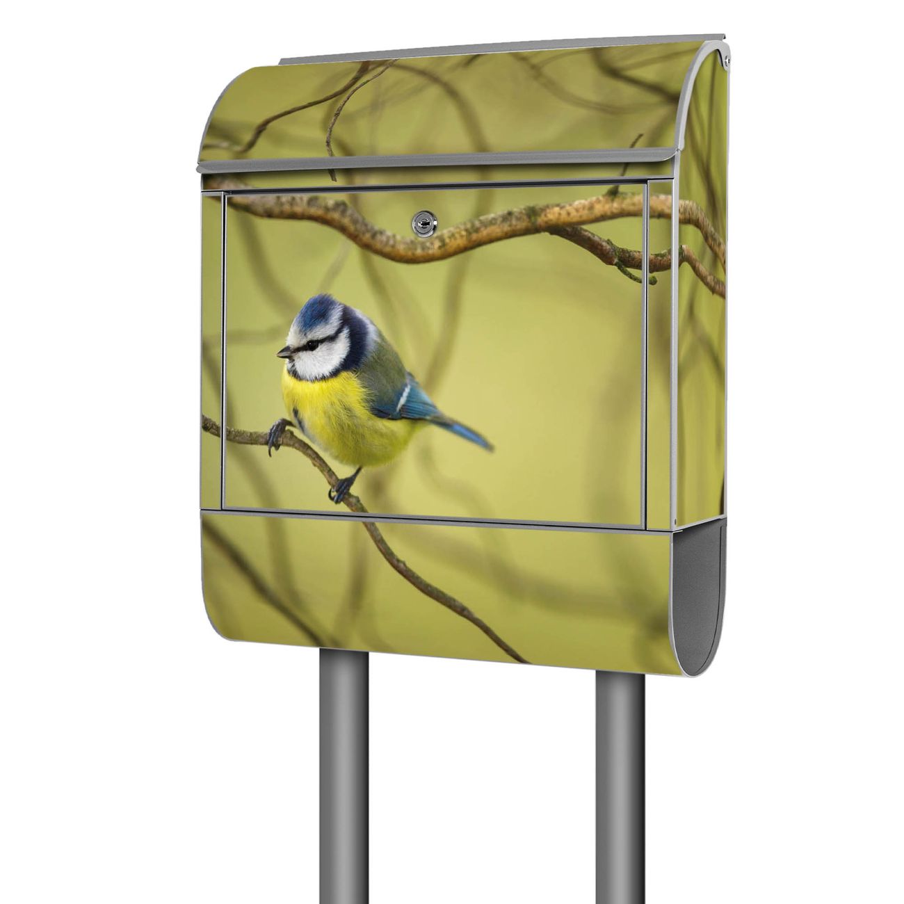 Standbriefkasten Stahl Blaumeise im Baum