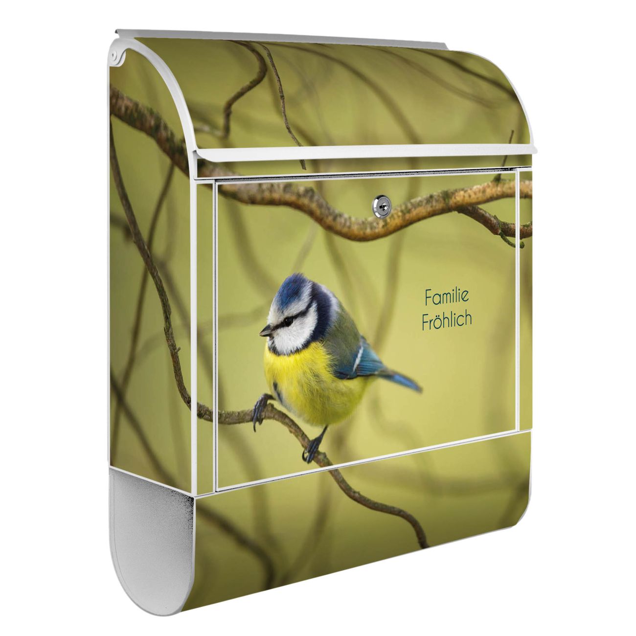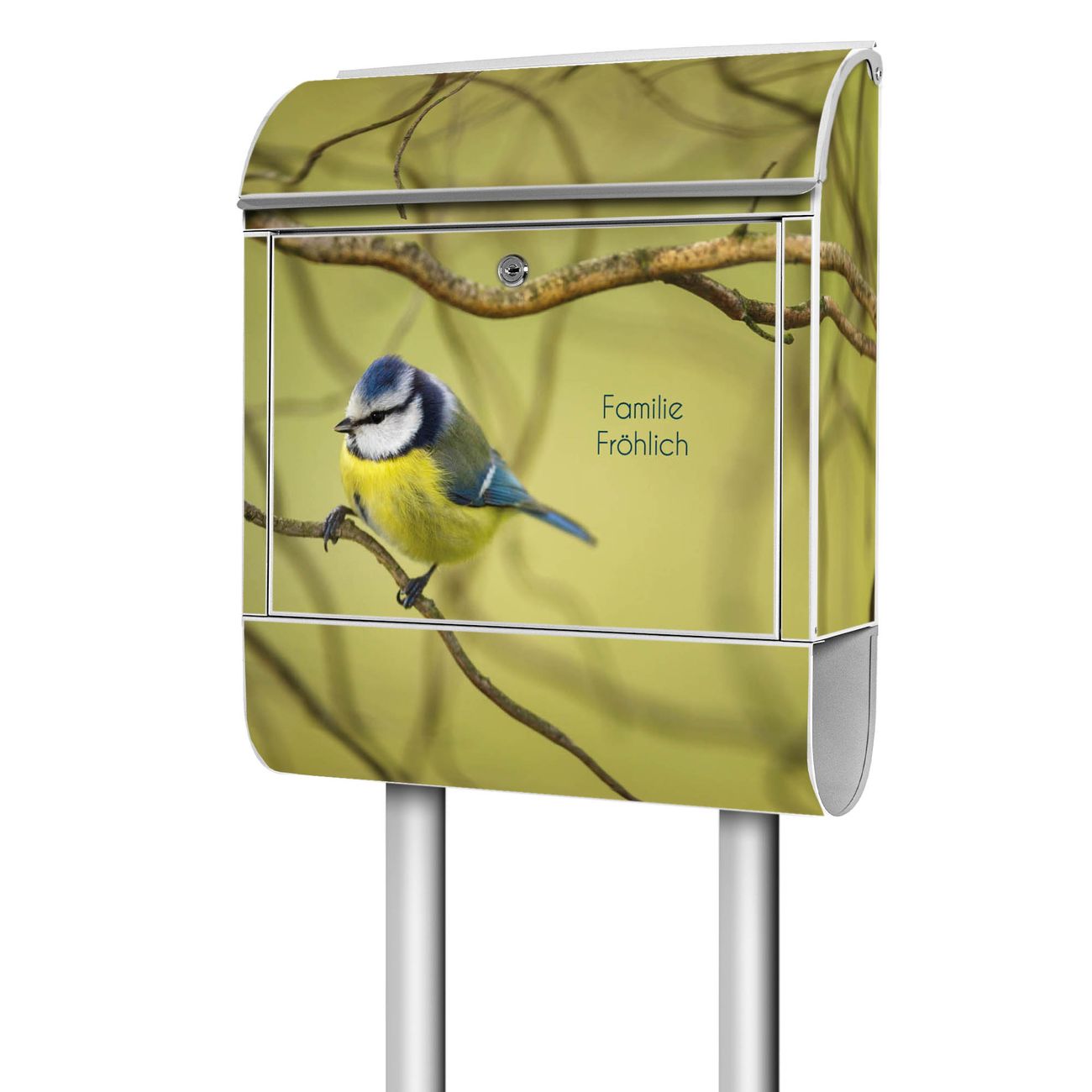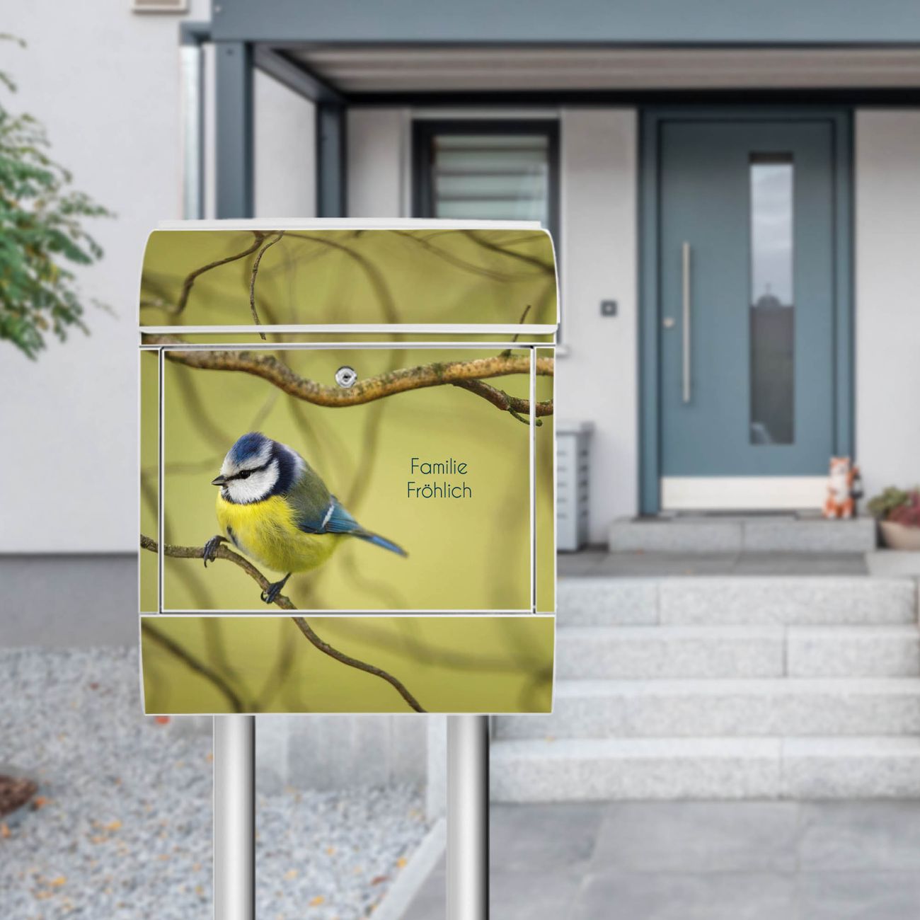 Standbriefkasten Stahl Blaumeise im Baum