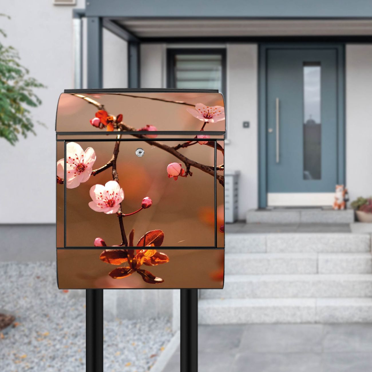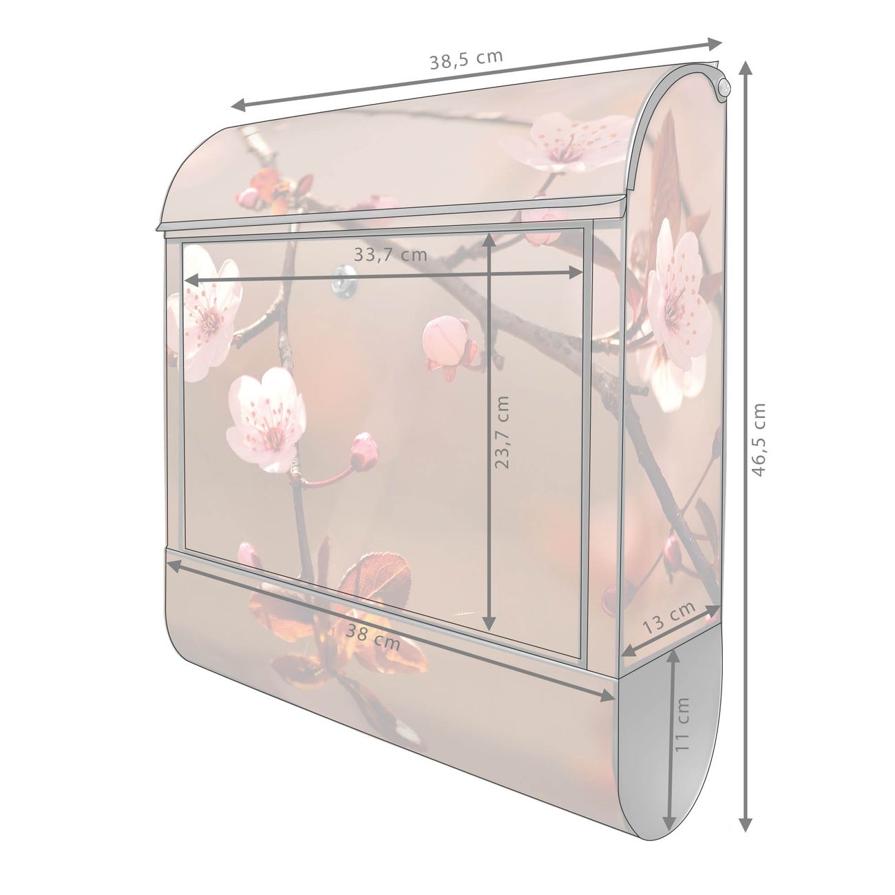 Der banjado Standbriefkasten mit Motiv Motiv Blühender Kirschzweig kombiniert großzügigen Stauraum mit modernem Design. Durch das geräumige Fach finden auch große A4-Sendungen problemlos Platz. Die integrierte Zeitungsrolle sorgt dafür, dass Tageszeitungen und Magazine separat und griffbereit untergebracht sind. Der pulverbeschichtete Standfuß ist farblich passend zum Briefkasten gestaltet und sorgt für ein stimmiges Gesamtbild. Mit dem individuellen Motiv setzen Sie einen optischen Akzent, der sowohl praktisch als auch dekorativ ist.