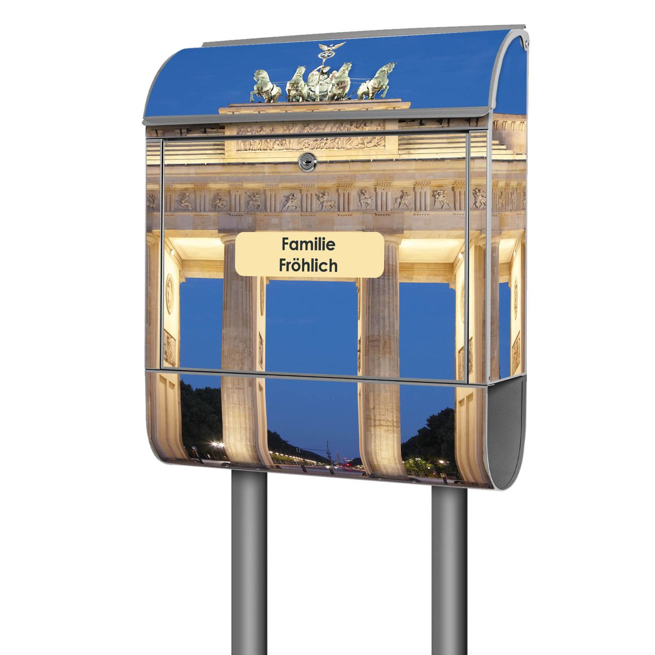Der banjado Standbriefkasten mit Motiv Motiv Brandenburger Tor 2 kombiniert großzügigen Stauraum mit modernem Design. Durch das geräumige Fach finden auch große A4-Sendungen problemlos Platz. Die integrierte Zeitungsrolle sorgt dafür, dass Tageszeitungen und Magazine separat und griffbereit untergebracht sind. Der pulverbeschichtete Standfuß ist farblich passend zum Briefkasten gestaltet und sorgt für ein stimmiges Gesamtbild. Mit dem individuellen Motiv setzen Sie einen optischen Akzent, der sowohl praktisch als auch dekorativ ist.