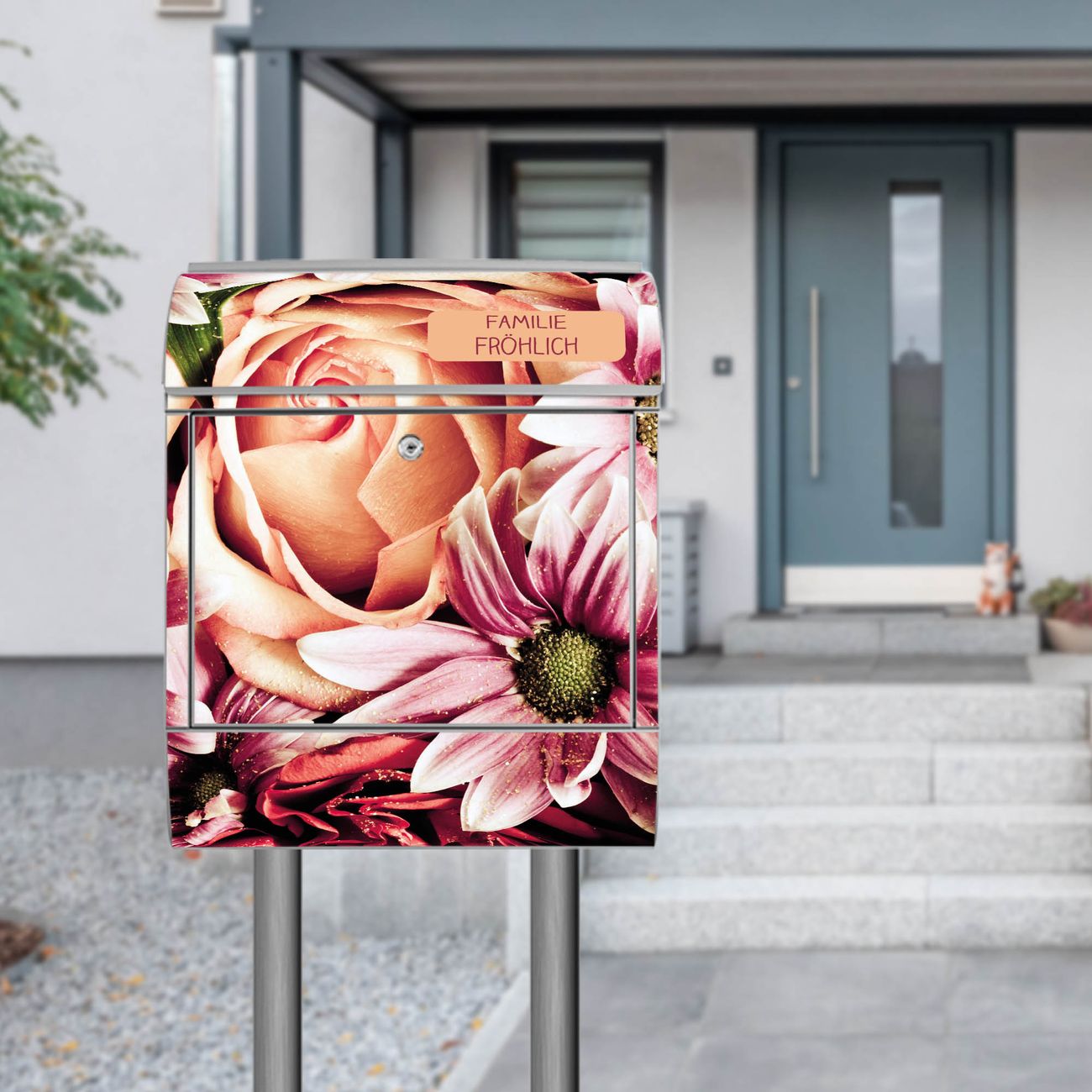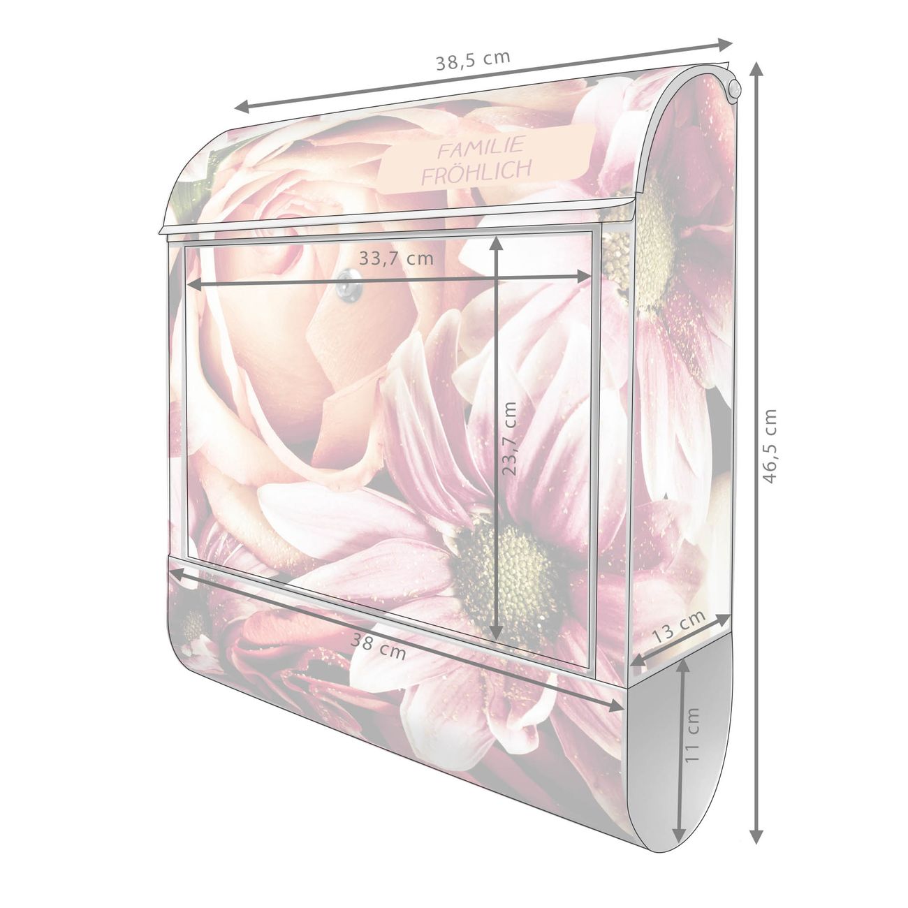 Der banjado Standbriefkasten mit Motiv Motiv Brautstrauss kombiniert großzügigen Stauraum mit modernem Design. Durch das geräumige Fach finden auch große A4-Sendungen problemlos Platz. Die integrierte Zeitungsrolle sorgt dafür, dass Tageszeitungen und Magazine separat und griffbereit untergebracht sind. Der pulverbeschichtete Standfuß ist farblich passend zum Briefkasten gestaltet und sorgt für ein stimmiges Gesamtbild. Mit dem individuellen Motiv setzen Sie einen optischen Akzent, der sowohl praktisch als auch dekorativ ist.