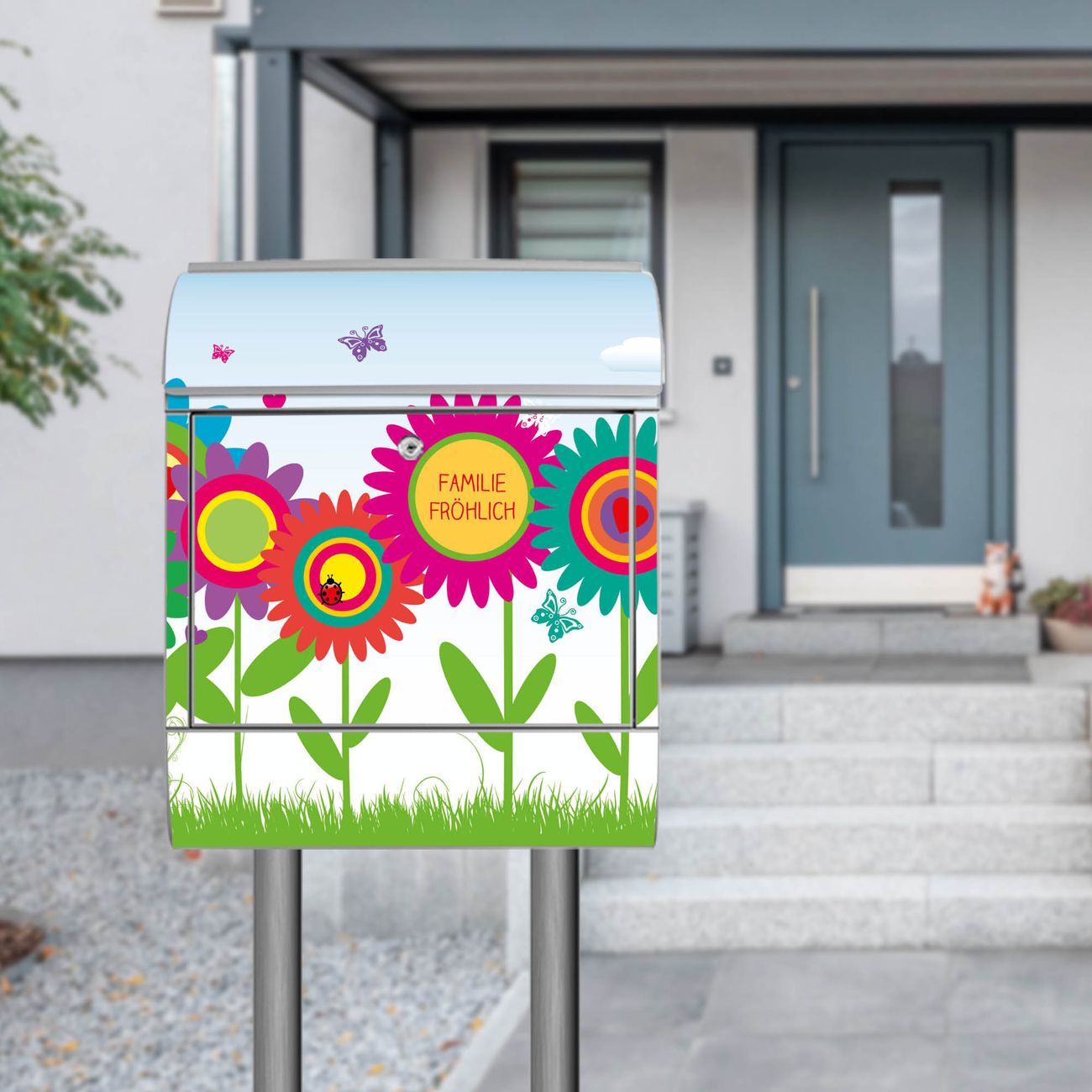 Standbriefkasten Stahl Bunte Blumen