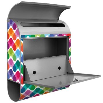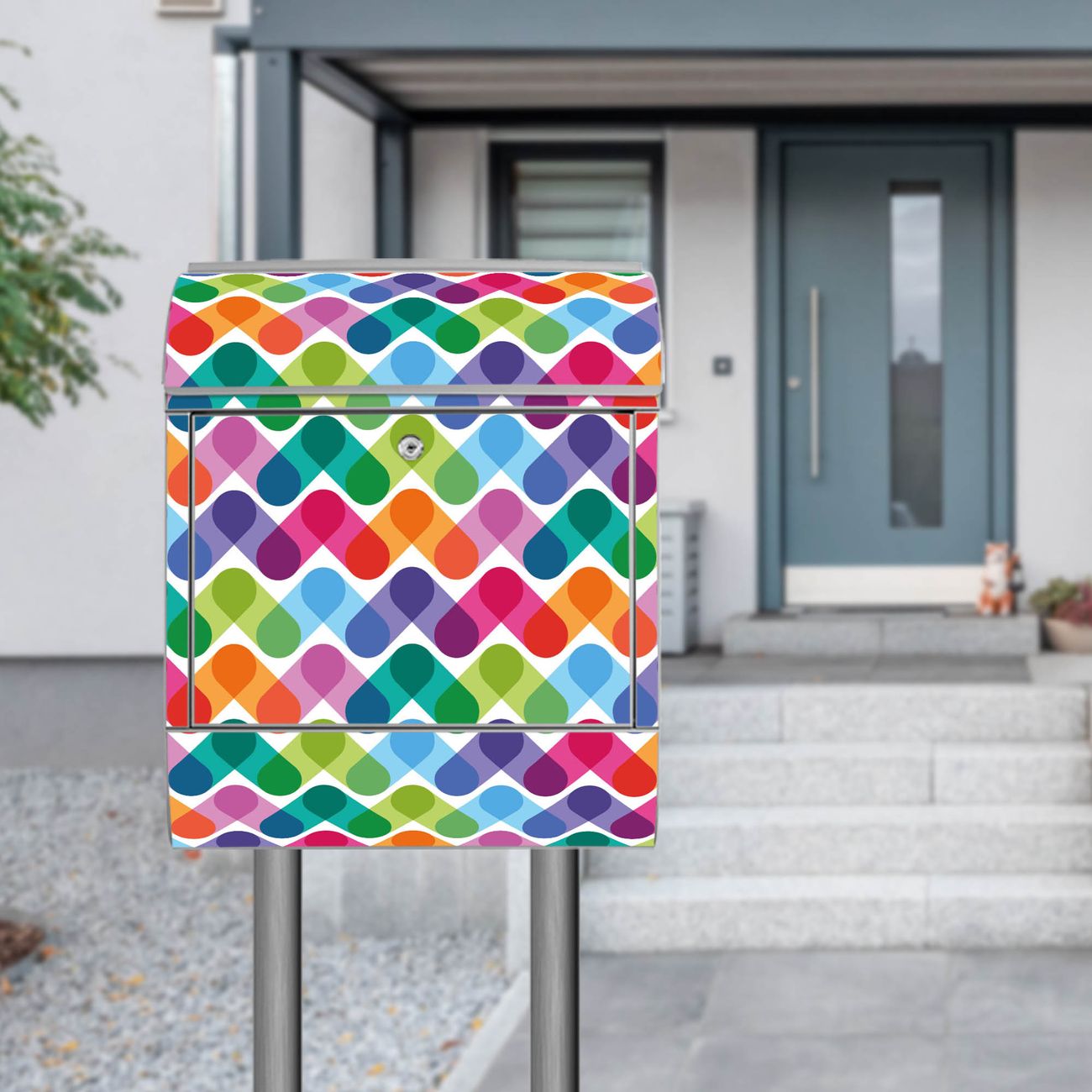 Der banjado Standbriefkasten mit Motiv Motiv Bunte Ketten kombiniert großzügigen Stauraum mit modernem Design. Durch das geräumige Fach finden auch große A4-Sendungen problemlos Platz. Die integrierte Zeitungsrolle sorgt dafür, dass Tageszeitungen und Magazine separat und griffbereit untergebracht sind. Der pulverbeschichtete Standfuß ist farblich passend zum Briefkasten gestaltet und sorgt für ein stimmiges Gesamtbild. Mit dem individuellen Motiv setzen Sie einen optischen Akzent, der sowohl praktisch als auch dekorativ ist.