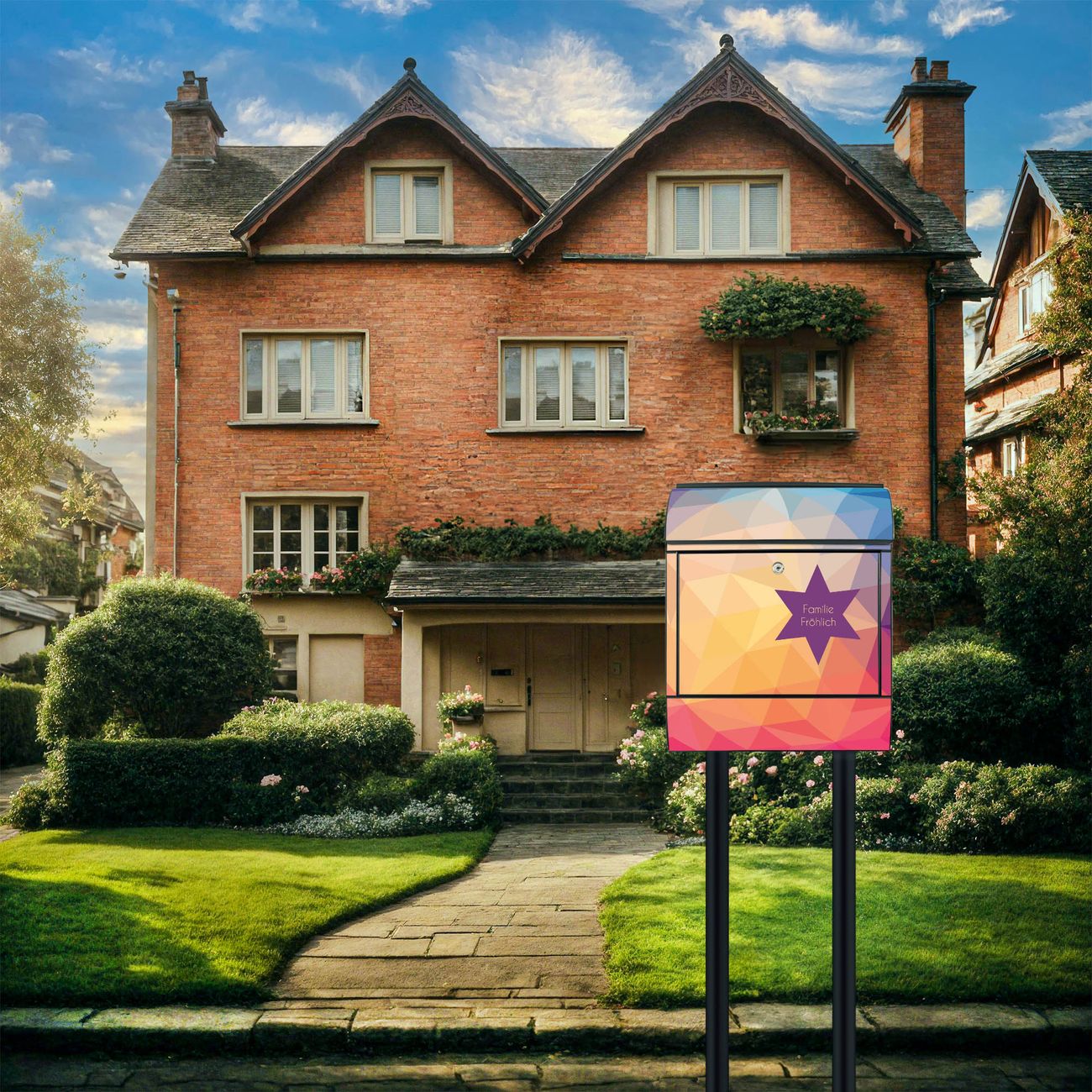 Der Standbriefkasten besteht aus pulverbeschichtetem Stahl und ist insgesamt ca. 161,5 x 47 x 16 cm groß. Das Motiv wird auf eine wetter- und UV-beständige Folie aufgebracht und mit einem robusten Schutzlaminat versiegelt. Damit bleibt die Farbbrillanz auch bei Sonne und Regen lange erhalten. Für einen sicheren Halt empfehlen wir, den Standbriefkasten mindestens 15 cm einzubetonieren. Jeder Briefkasten wird in Sachsen in einer kleinen Manufaktur von Hand veredelt - Sie erhalten ein Stück langlebige Handarbeit, das Funktionalität und Design vereint.