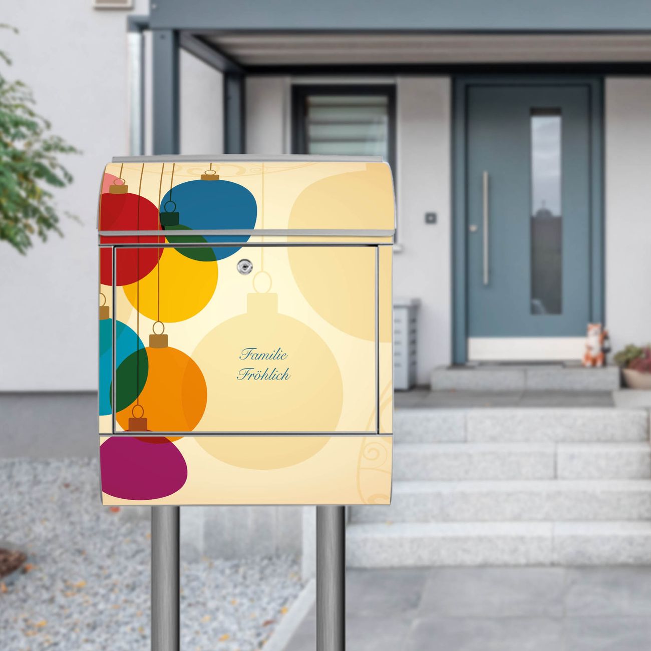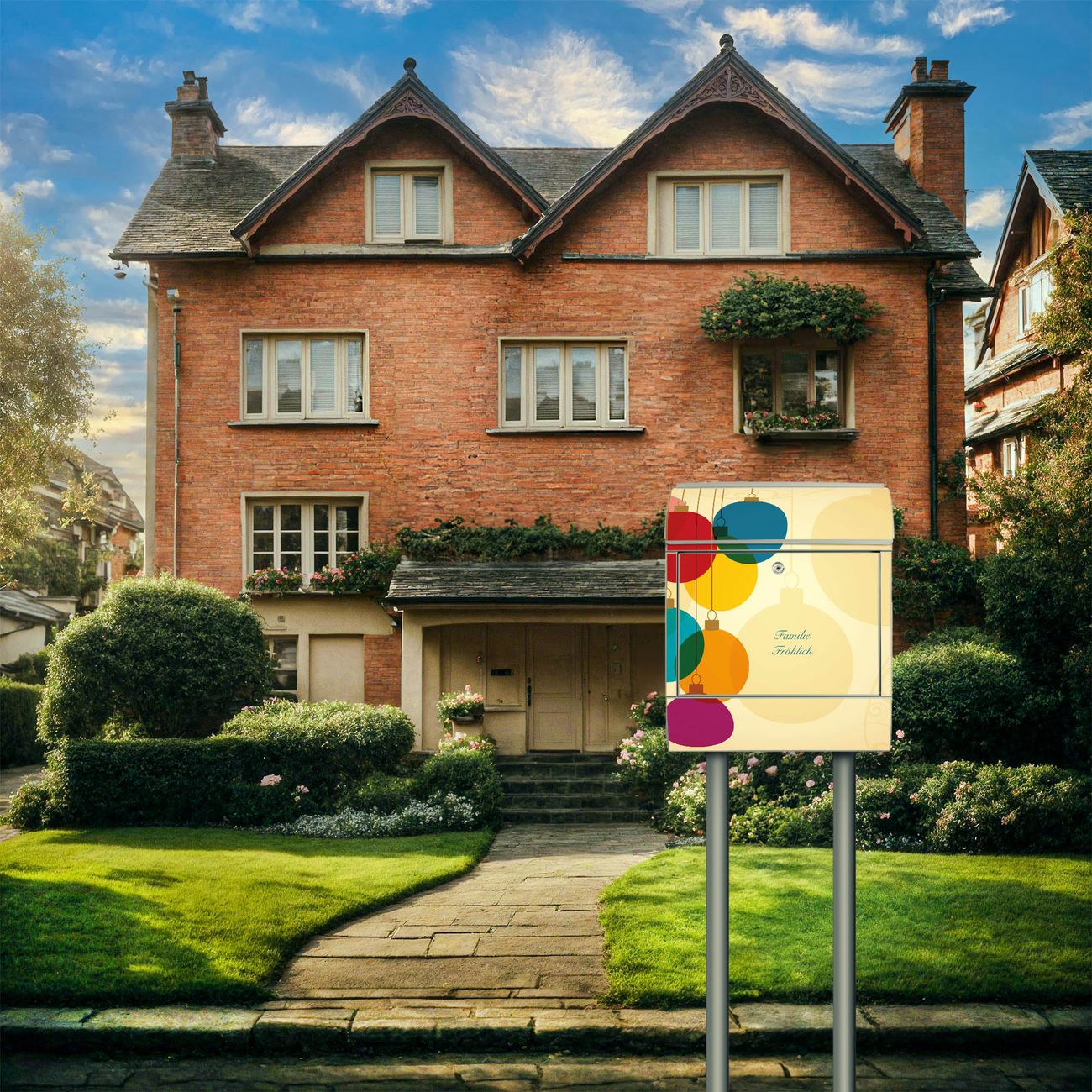 Der banjado Standbriefkasten mit Motiv Motiv Bunte Kugeln kombiniert großzügigen Stauraum mit modernem Design. Durch das geräumige Fach finden auch große A4-Sendungen problemlos Platz. Die integrierte Zeitungsrolle sorgt dafür, dass Tageszeitungen und Magazine separat und griffbereit untergebracht sind. Der pulverbeschichtete Standfuß ist farblich passend zum Briefkasten gestaltet und sorgt für ein stimmiges Gesamtbild. Mit dem individuellen Motiv setzen Sie einen optischen Akzent, der sowohl praktisch als auch dekorativ ist.