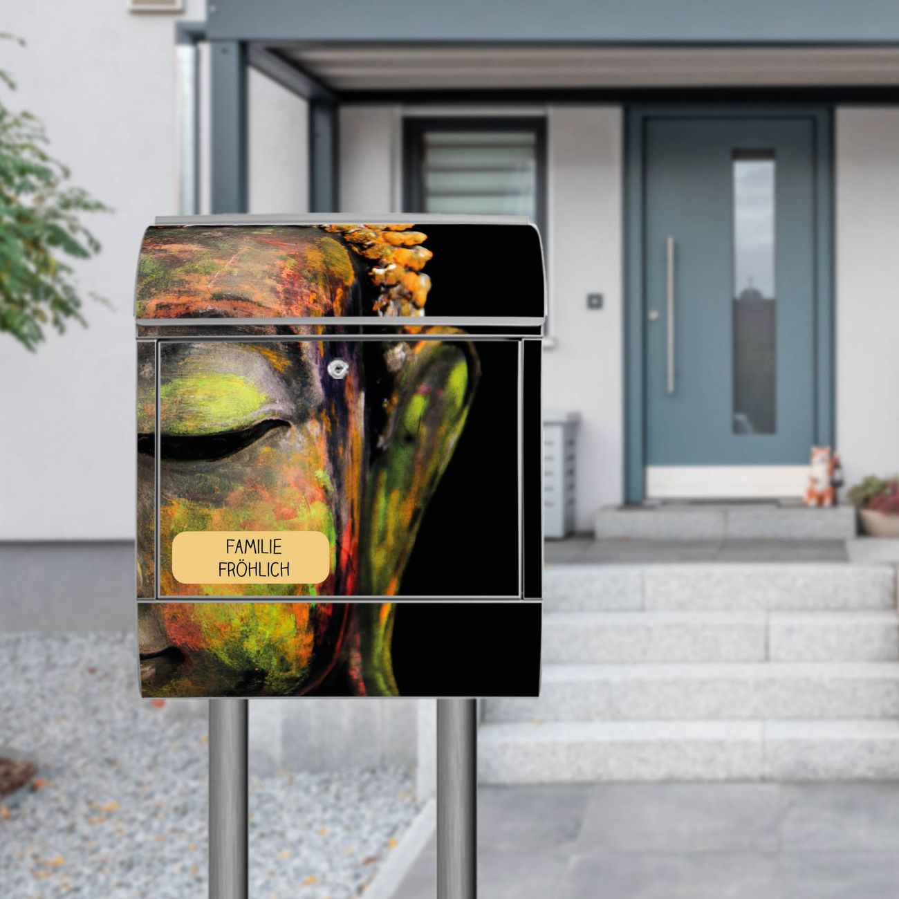 Standbriefkasten Stahl Bunter Buddha