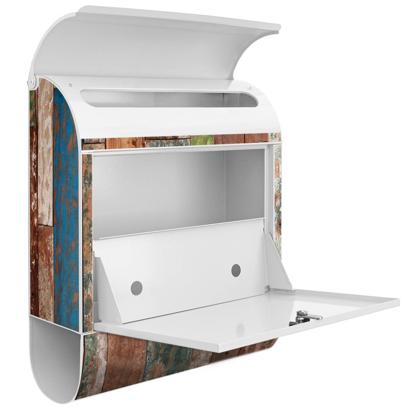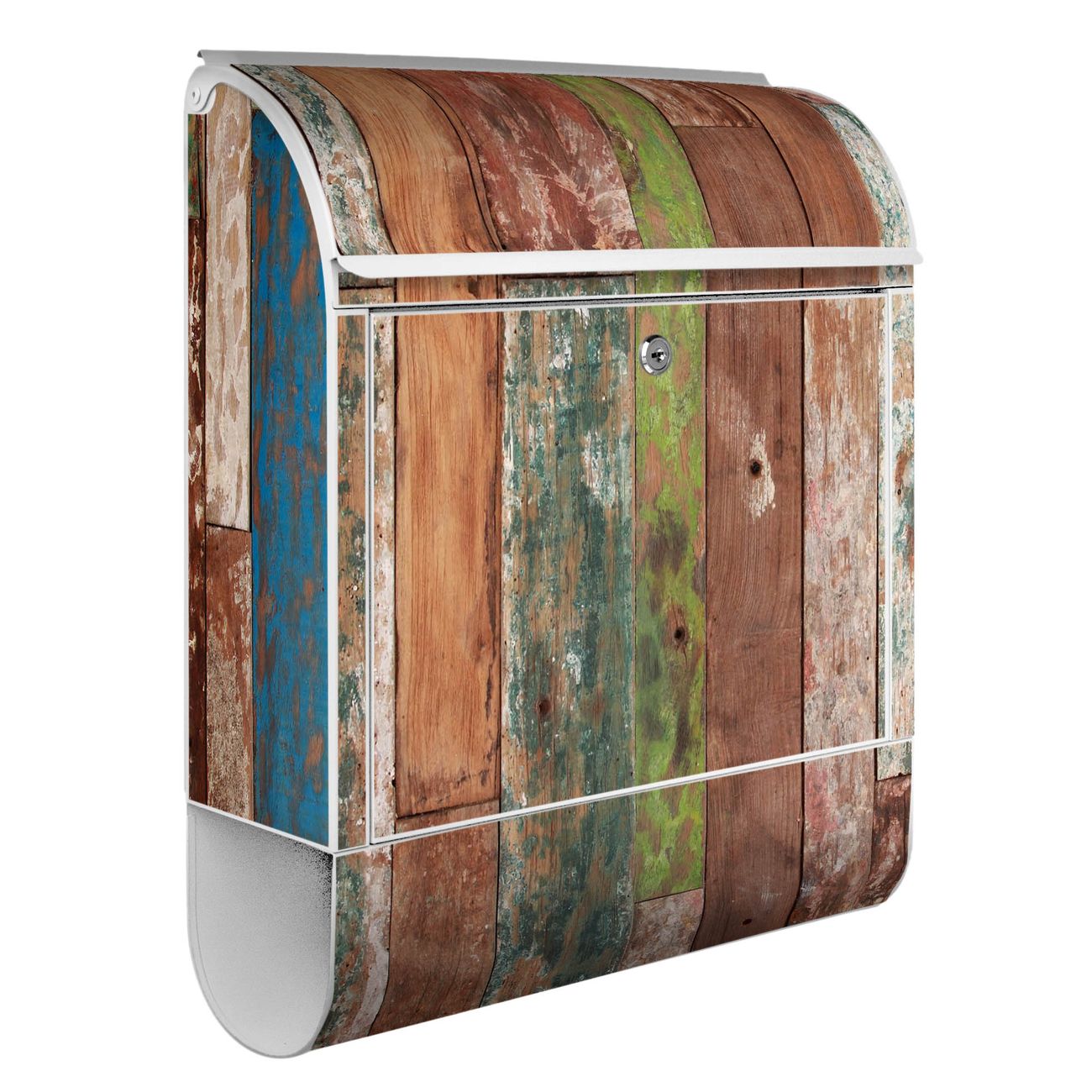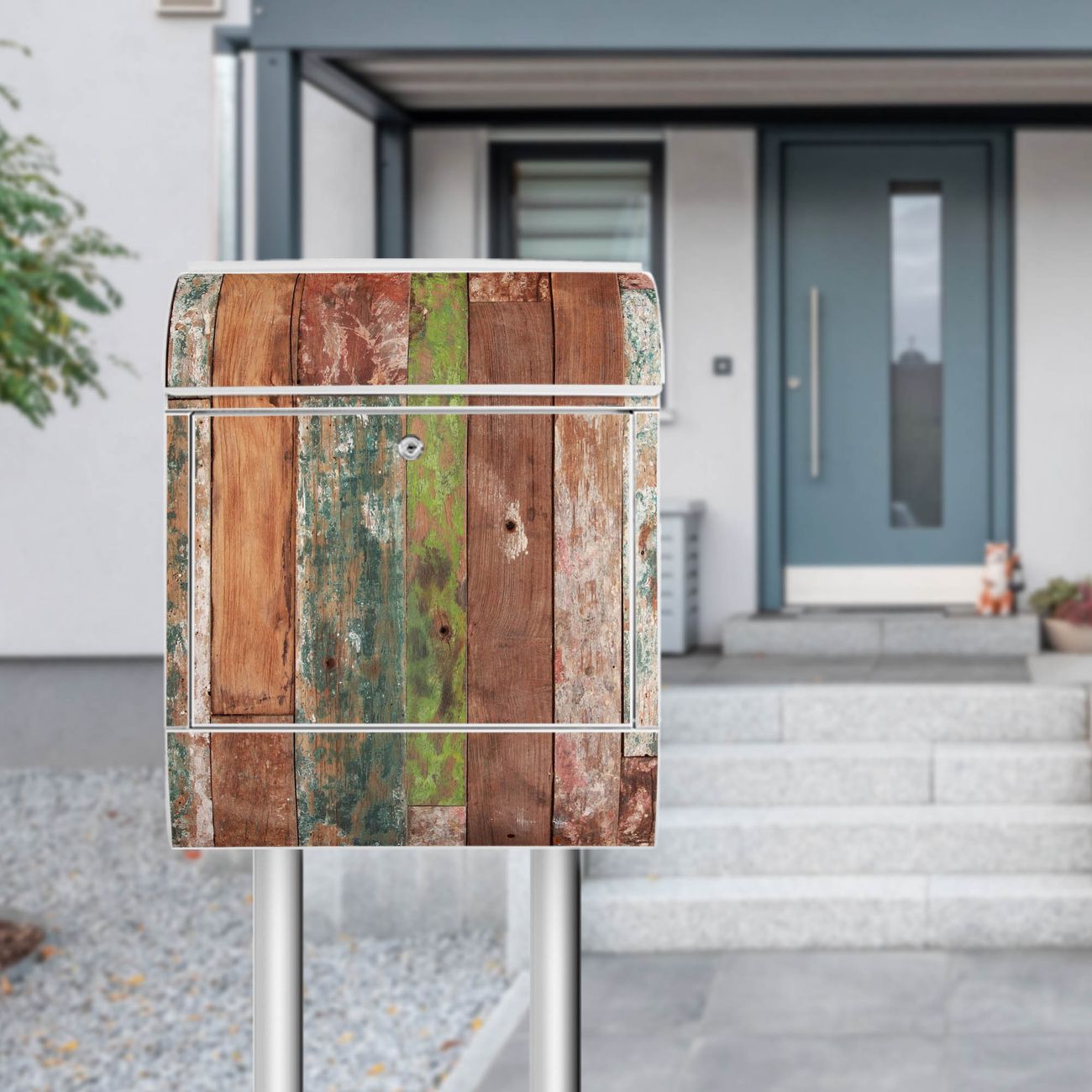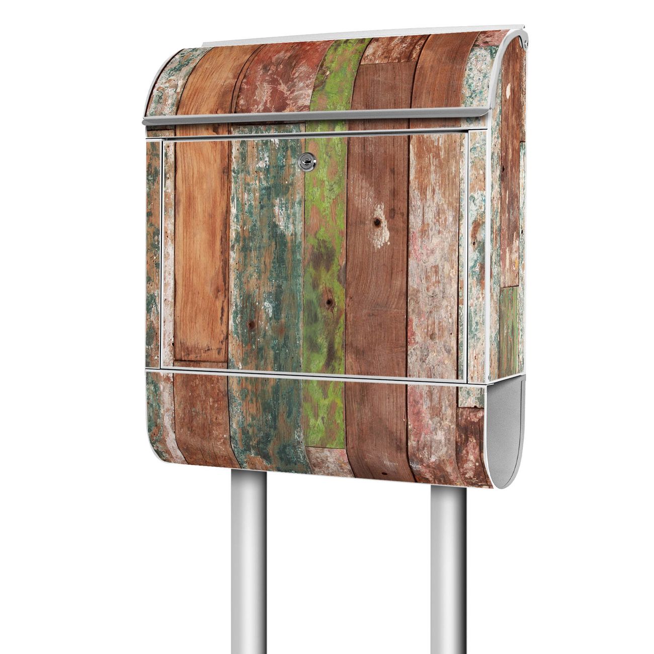 Der banjado Standbriefkasten mit Motiv Motiv Buntes Holz kombiniert großzügigen Stauraum mit modernem Design. Durch das geräumige Fach finden auch große A4-Sendungen problemlos Platz. Die integrierte Zeitungsrolle sorgt dafür, dass Tageszeitungen und Magazine separat und griffbereit untergebracht sind. Der pulverbeschichtete Standfuß ist farblich passend zum Briefkasten gestaltet und sorgt für ein stimmiges Gesamtbild. Mit dem individuellen Motiv setzen Sie einen optischen Akzent, der sowohl praktisch als auch dekorativ ist.