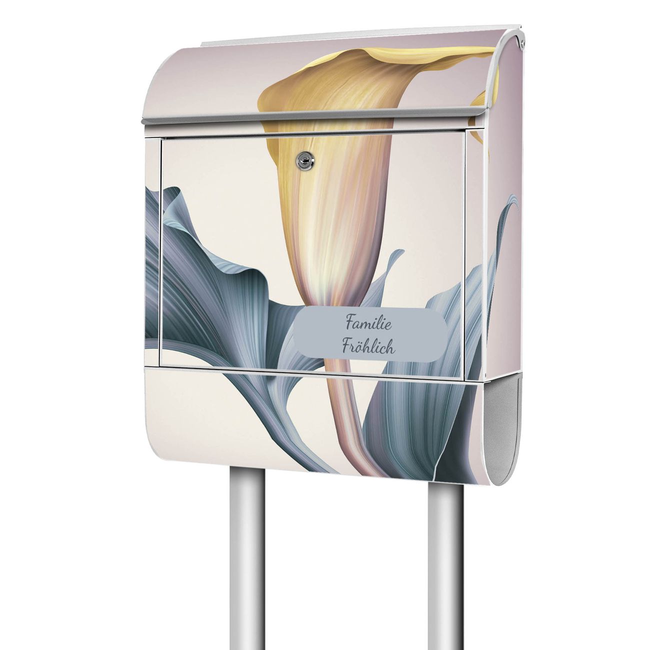 Der banjado Standbriefkasten mit Motiv Motiv Calla kombiniert großzügigen Stauraum mit modernem Design. Durch das geräumige Fach finden auch große A4-Sendungen problemlos Platz. Die integrierte Zeitungsrolle sorgt dafür, dass Tageszeitungen und Magazine separat und griffbereit untergebracht sind. Der pulverbeschichtete Standfuß ist farblich passend zum Briefkasten gestaltet und sorgt für ein stimmiges Gesamtbild. Mit dem individuellen Motiv setzen Sie einen optischen Akzent, der sowohl praktisch als auch dekorativ ist.