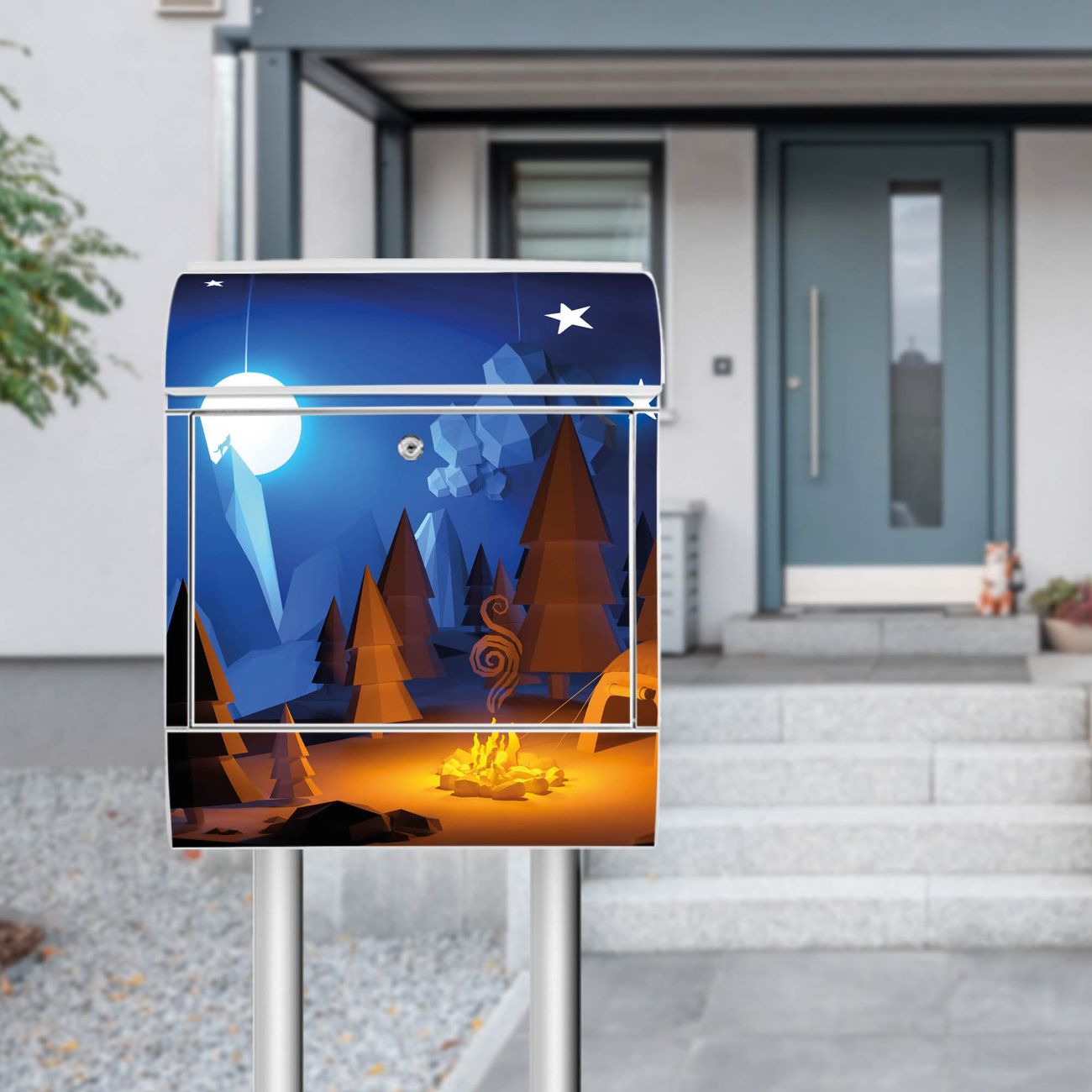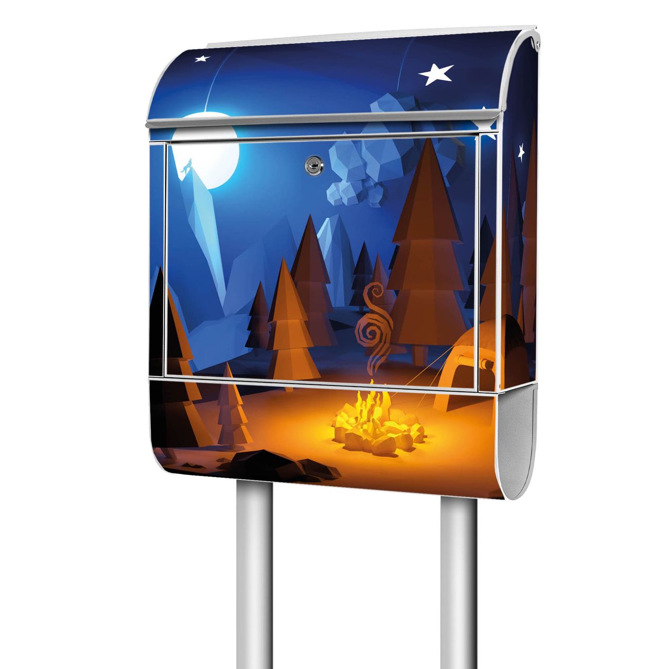Der banjado Standbriefkasten mit Motiv Motiv Camping 2 kombiniert großzügigen Stauraum mit modernem Design. Durch das geräumige Fach finden auch große A4-Sendungen problemlos Platz. Die integrierte Zeitungsrolle sorgt dafür, dass Tageszeitungen und Magazine separat und griffbereit untergebracht sind. Der pulverbeschichtete Standfuß ist farblich passend zum Briefkasten gestaltet und sorgt für ein stimmiges Gesamtbild. Mit dem individuellen Motiv setzen Sie einen optischen Akzent, der sowohl praktisch als auch dekorativ ist.