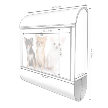 Der banjado Standbriefkasten mit Motiv Motiv Chihuahua kombiniert großzügigen Stauraum mit modernem Design. Durch das geräumige Fach finden auch große A4-Sendungen problemlos Platz. Die integrierte Zeitungsrolle sorgt dafür, dass Tageszeitungen und Magazine separat und griffbereit untergebracht sind. Der pulverbeschichtete Standfuß ist farblich passend zum Briefkasten gestaltet und sorgt für ein stimmiges Gesamtbild. Mit dem individuellen Motiv setzen Sie einen optischen Akzent, der sowohl praktisch als auch dekorativ ist.
