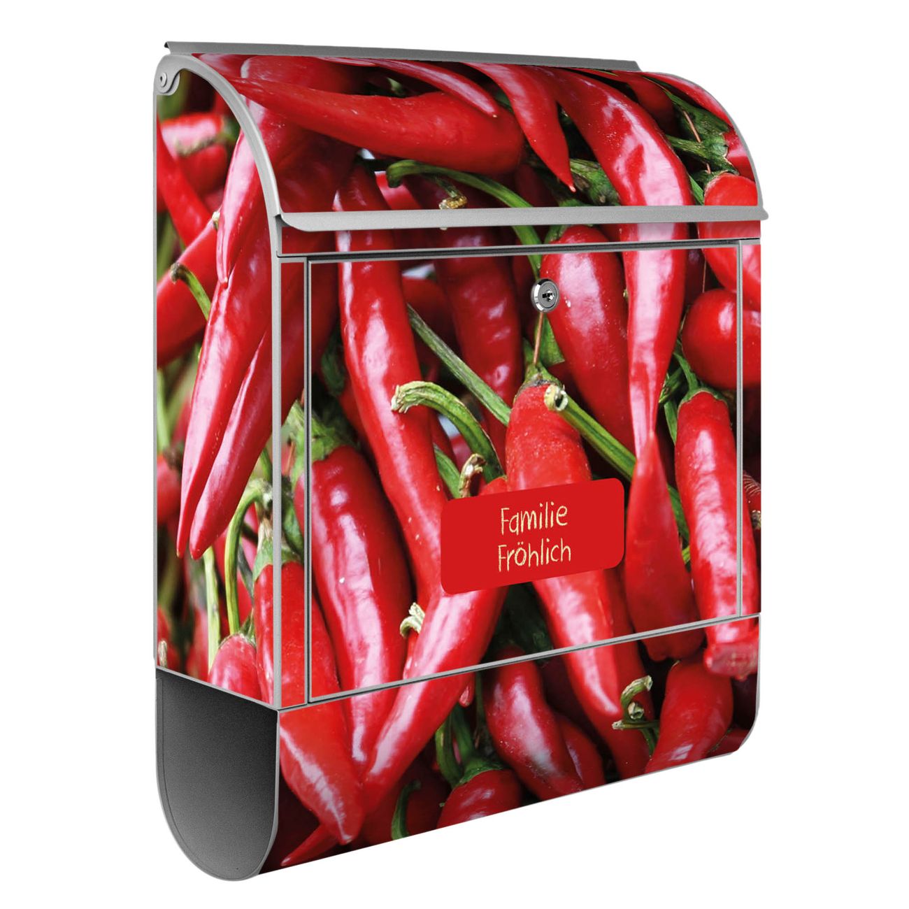 Der banjado Standbriefkasten mit Motiv Motiv Chilli kombiniert großzügigen Stauraum mit modernem Design. Durch das geräumige Fach finden auch große A4-Sendungen problemlos Platz. Die integrierte Zeitungsrolle sorgt dafür, dass Tageszeitungen und Magazine separat und griffbereit untergebracht sind. Der pulverbeschichtete Standfuß ist farblich passend zum Briefkasten gestaltet und sorgt für ein stimmiges Gesamtbild. Mit dem individuellen Motiv setzen Sie einen optischen Akzent, der sowohl praktisch als auch dekorativ ist.