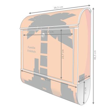 Der banjado Standbriefkasten mit Motiv Motiv City Poster Los Angeles kombiniert großzügigen Stauraum mit modernem Design. Durch das geräumige Fach finden auch große A4-Sendungen problemlos Platz. Die integrierte Zeitungsrolle sorgt dafür, dass Tageszeitungen und Magazine separat und griffbereit untergebracht sind. Der pulverbeschichtete Standfuß ist farblich passend zum Briefkasten gestaltet und sorgt für ein stimmiges Gesamtbild. Mit dem individuellen Motiv setzen Sie einen optischen Akzent, der sowohl praktisch als auch dekorativ ist.