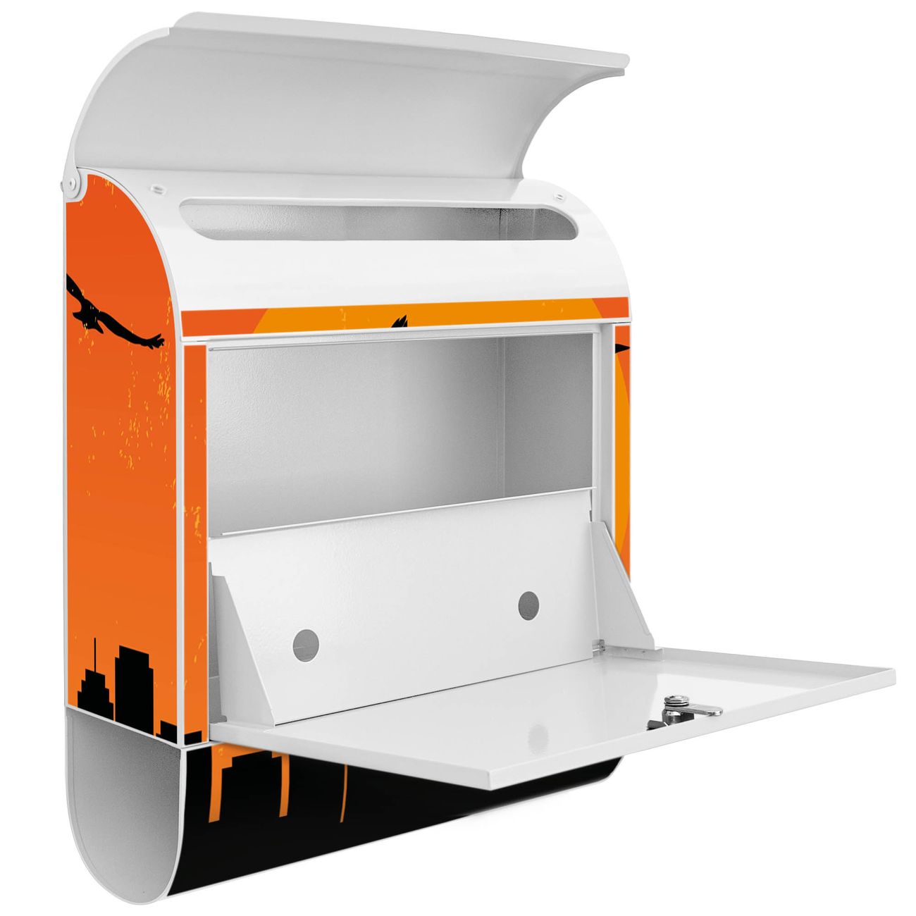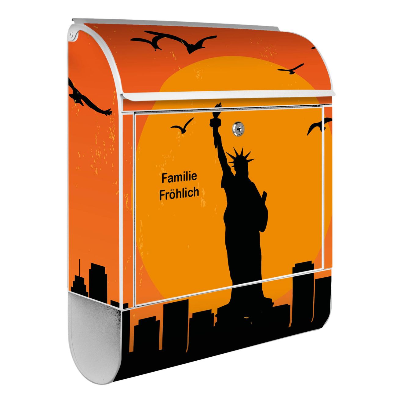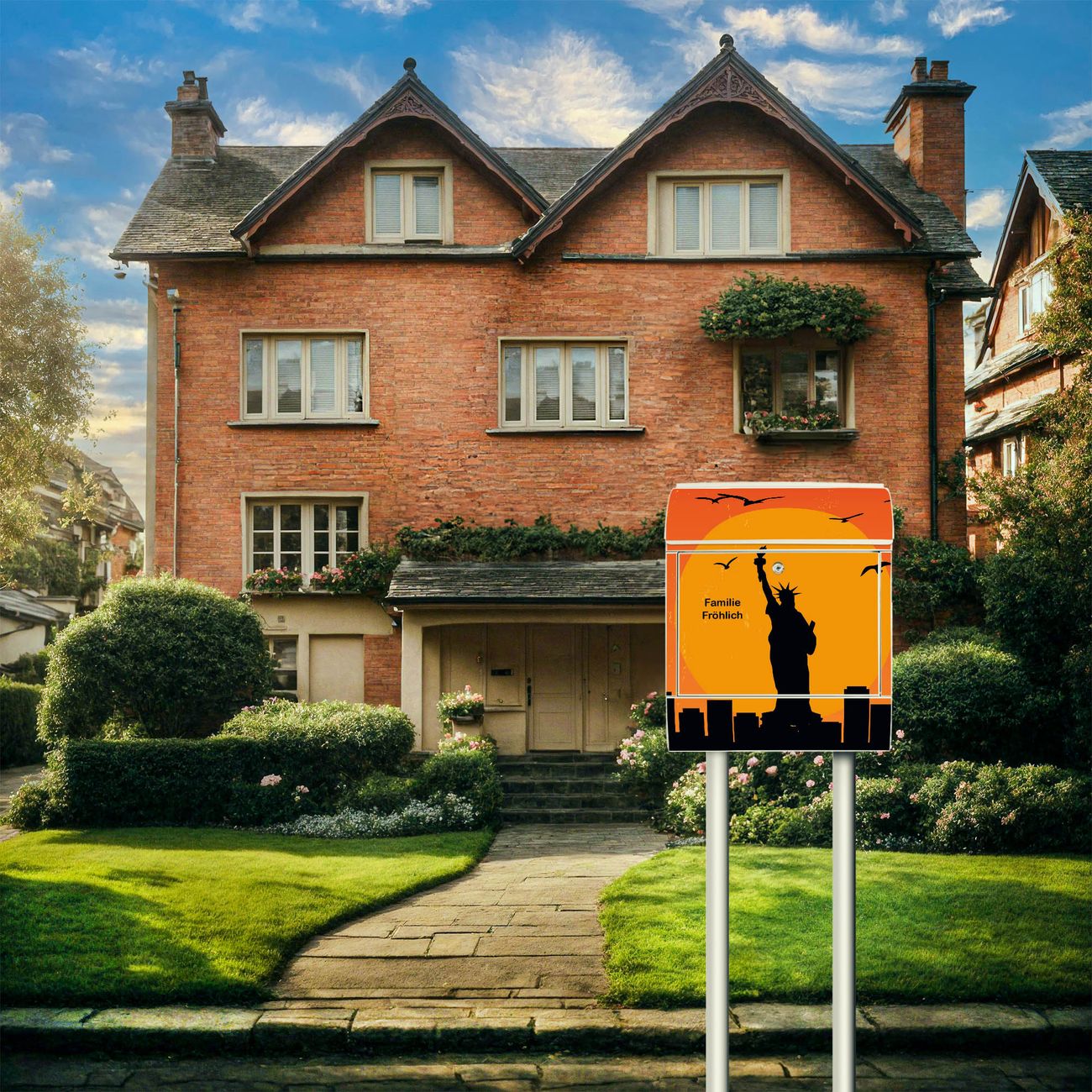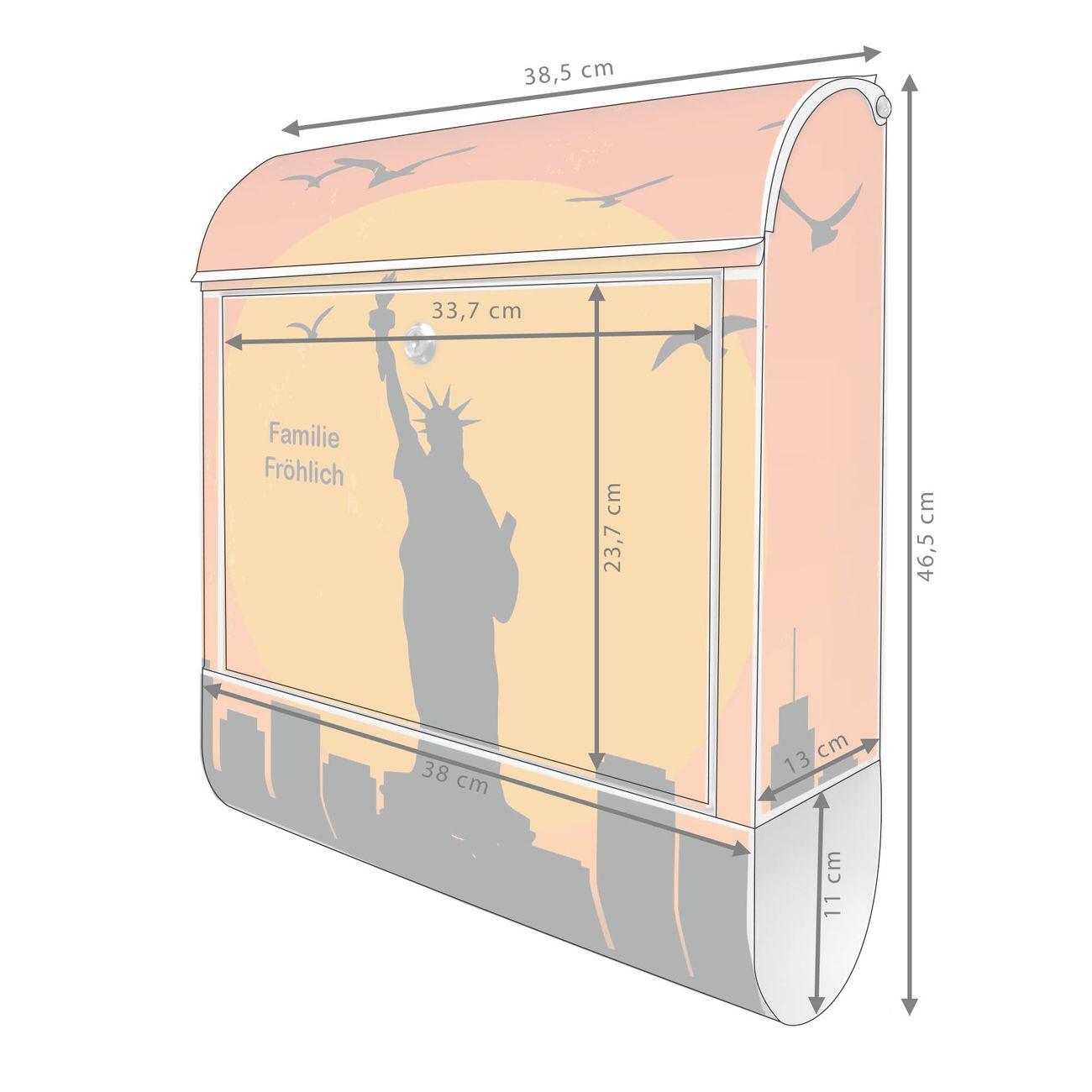 Der banjado Standbriefkasten mit Motiv Motiv City Poster New York kombiniert großzügigen Stauraum mit modernem Design. Durch das geräumige Fach finden auch große A4-Sendungen problemlos Platz. Die integrierte Zeitungsrolle sorgt dafür, dass Tageszeitungen und Magazine separat und griffbereit untergebracht sind. Der pulverbeschichtete Standfuß ist farblich passend zum Briefkasten gestaltet und sorgt für ein stimmiges Gesamtbild. Mit dem individuellen Motiv setzen Sie einen optischen Akzent, der sowohl praktisch als auch dekorativ ist.