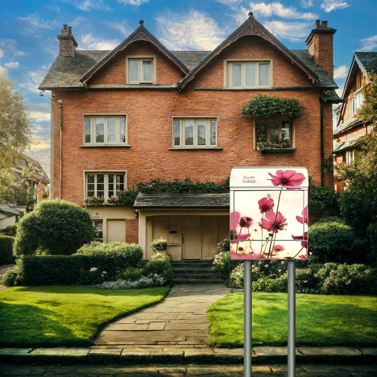 Der Standbriefkasten besteht aus pulverbeschichtetem Stahl und ist insgesamt ca. 161,5 x 47 x 16 cm groß. Das Motiv wird auf eine wetter- und UV-beständige Folie aufgebracht und mit einem robusten Schutzlaminat versiegelt. Damit bleibt die Farbbrillanz auch bei Sonne und Regen lange erhalten. Für einen sicheren Halt empfehlen wir, den Standbriefkasten mindestens 15 cm einzubetonieren. Jeder Briefkasten wird in Sachsen in einer kleinen Manufaktur von Hand veredelt - Sie erhalten ein Stück langlebige Handarbeit, das Funktionalität und Design vereint.