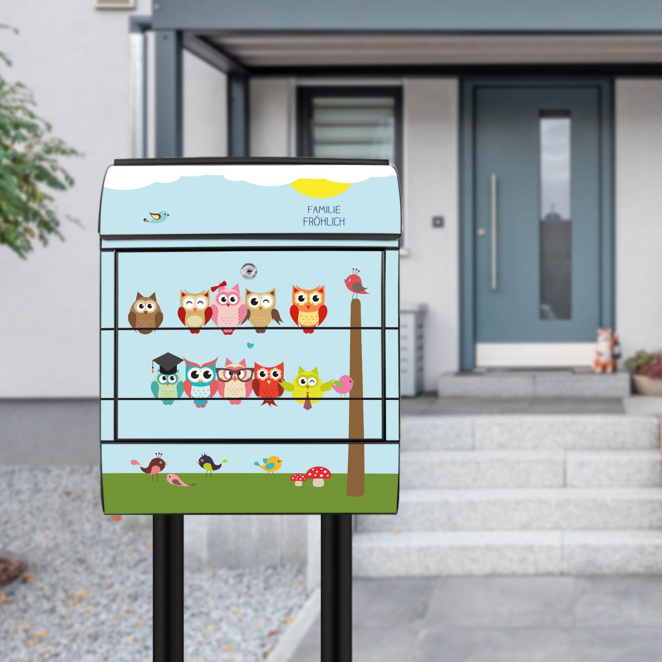 Der Vorschau-Text Familie Fröhlich wird durch Ihren persönlichen Wunschtext ersetzt. Die Schriftart und Farbe bleiben gleich wie in der Vorschau.