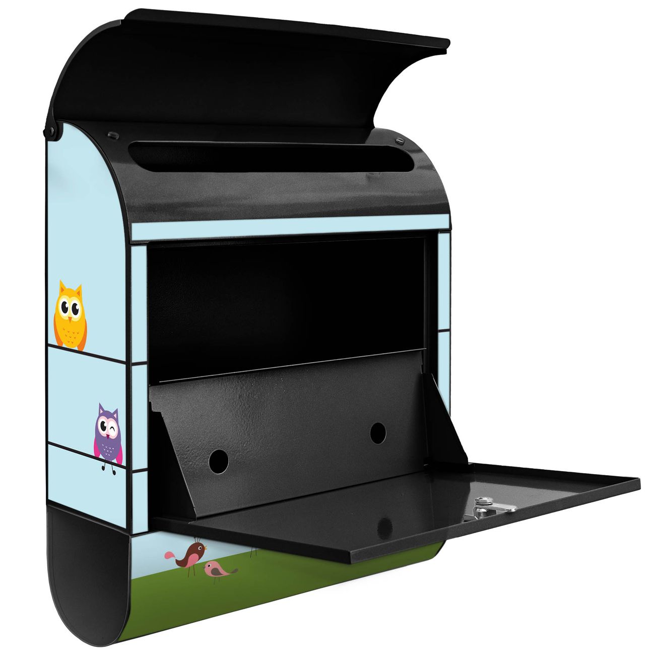 Der banjado Standbriefkasten mit Motiv Motiv Da Wären Wir kombiniert großzügigen Stauraum mit modernem Design. Durch das geräumige Fach finden auch große A4-Sendungen problemlos Platz. Die integrierte Zeitungsrolle sorgt dafür, dass Tageszeitungen und Magazine separat und griffbereit untergebracht sind. Der pulverbeschichtete Standfuß ist farblich passend zum Briefkasten gestaltet und sorgt für ein stimmiges Gesamtbild. Mit dem individuellen Motiv setzen Sie einen optischen Akzent, der sowohl praktisch als auch dekorativ ist.