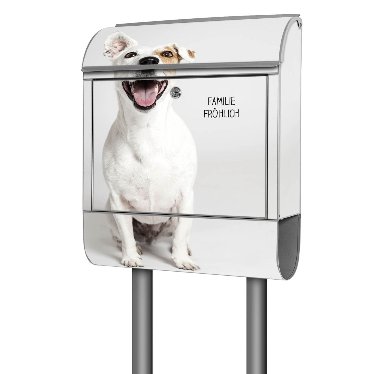 Der banjado Standbriefkasten mit Motiv Motiv Derek kombiniert großzügigen Stauraum mit modernem Design. Durch das geräumige Fach finden auch große A4-Sendungen problemlos Platz. Die integrierte Zeitungsrolle sorgt dafür, dass Tageszeitungen und Magazine separat und griffbereit untergebracht sind. Der pulverbeschichtete Standfuß ist farblich passend zum Briefkasten gestaltet und sorgt für ein stimmiges Gesamtbild. Mit dem individuellen Motiv setzen Sie einen optischen Akzent, der sowohl praktisch als auch dekorativ ist.