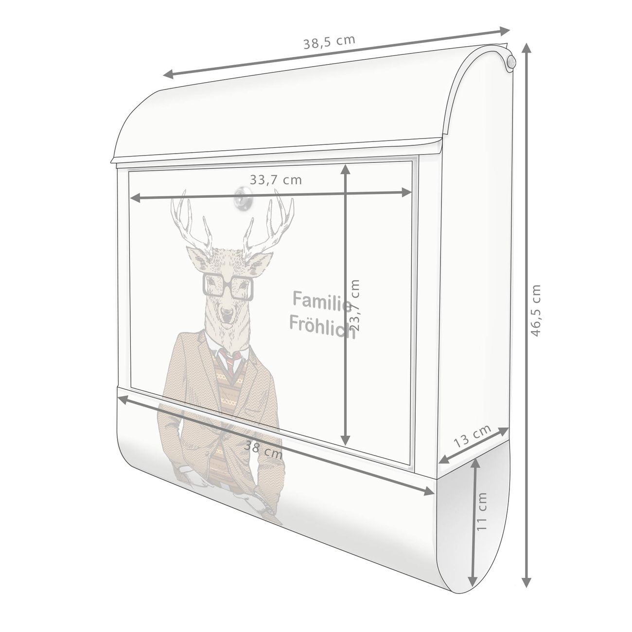 Der banjado Standbriefkasten mit Motiv Motiv Doktor Hirsch kombiniert großzügigen Stauraum mit modernem Design. Durch das geräumige Fach finden auch große A4-Sendungen problemlos Platz. Die integrierte Zeitungsrolle sorgt dafür, dass Tageszeitungen und Magazine separat und griffbereit untergebracht sind. Der pulverbeschichtete Standfuß ist farblich passend zum Briefkasten gestaltet und sorgt für ein stimmiges Gesamtbild. Mit dem individuellen Motiv setzen Sie einen optischen Akzent, der sowohl praktisch als auch dekorativ ist.