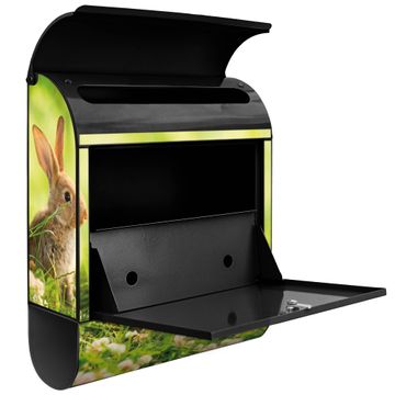 Der banjado Standbriefkasten mit Motiv Motiv Drei Hasen kombiniert großzügigen Stauraum mit modernem Design. Durch das geräumige Fach finden auch große A4-Sendungen problemlos Platz. Die integrierte Zeitungsrolle sorgt dafür, dass Tageszeitungen und Magazine separat und griffbereit untergebracht sind. Der pulverbeschichtete Standfuß ist farblich passend zum Briefkasten gestaltet und sorgt für ein stimmiges Gesamtbild. Mit dem individuellen Motiv setzen Sie einen optischen Akzent, der sowohl praktisch als auch dekorativ ist.