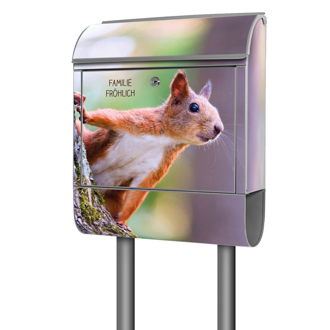Der banjado Standbriefkasten mit Motiv Motiv Eichhörnchen kombiniert großzügigen Stauraum mit modernem Design. Durch das geräumige Fach finden auch große A4-Sendungen problemlos Platz. Die integrierte Zeitungsrolle sorgt dafür, dass Tageszeitungen und Magazine separat und griffbereit untergebracht sind. Der pulverbeschichtete Standfuß ist farblich passend zum Briefkasten gestaltet und sorgt für ein stimmiges Gesamtbild. Mit dem individuellen Motiv setzen Sie einen optischen Akzent, der sowohl praktisch als auch dekorativ ist.
