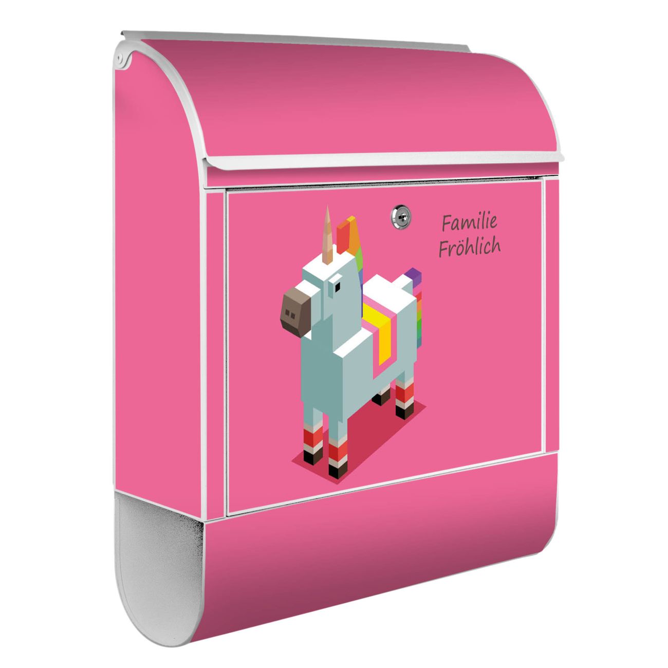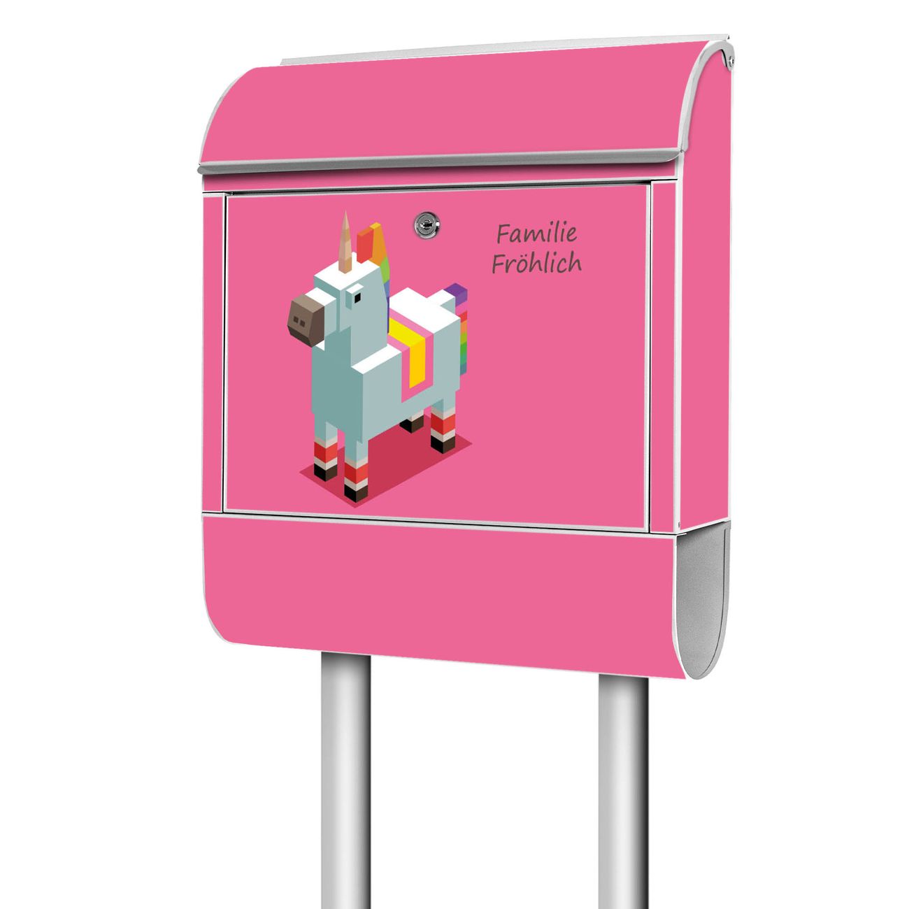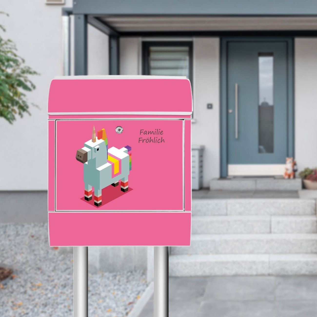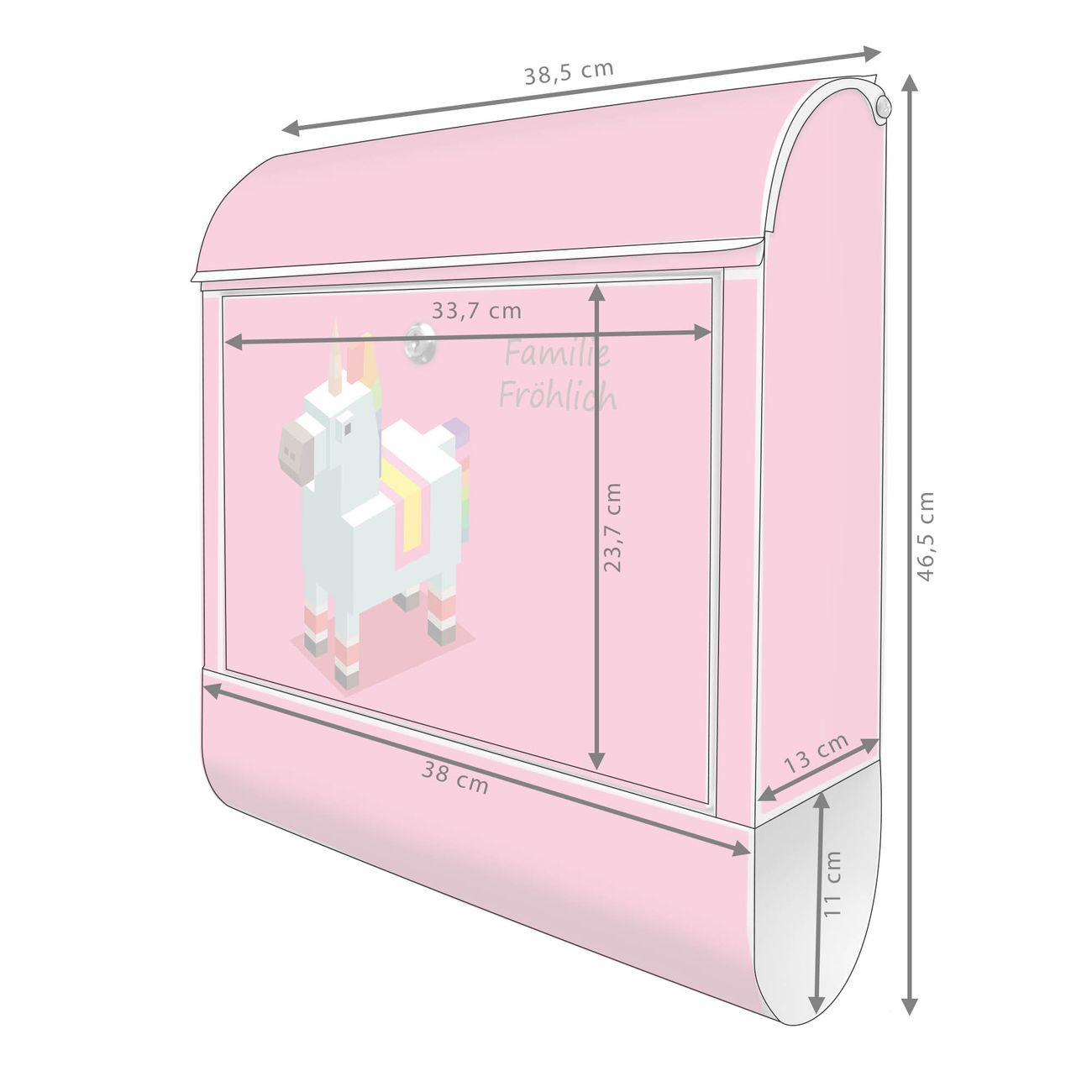 Der banjado Standbriefkasten mit Motiv Motiv Einhorn Block kombiniert großzügigen Stauraum mit modernem Design. Durch das geräumige Fach finden auch große A4-Sendungen problemlos Platz. Die integrierte Zeitungsrolle sorgt dafür, dass Tageszeitungen und Magazine separat und griffbereit untergebracht sind. Der pulverbeschichtete Standfuß ist farblich passend zum Briefkasten gestaltet und sorgt für ein stimmiges Gesamtbild. Mit dem individuellen Motiv setzen Sie einen optischen Akzent, der sowohl praktisch als auch dekorativ ist.