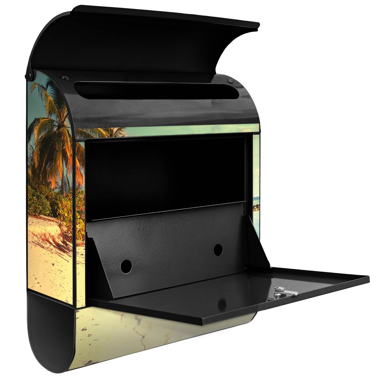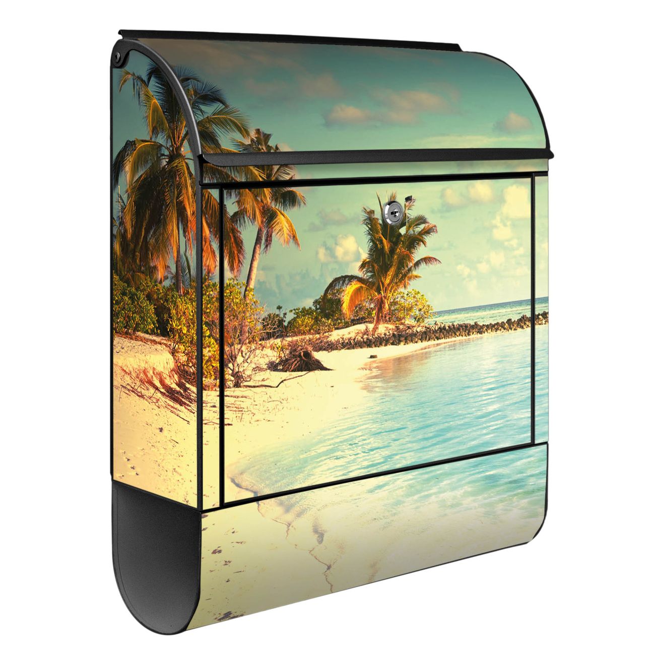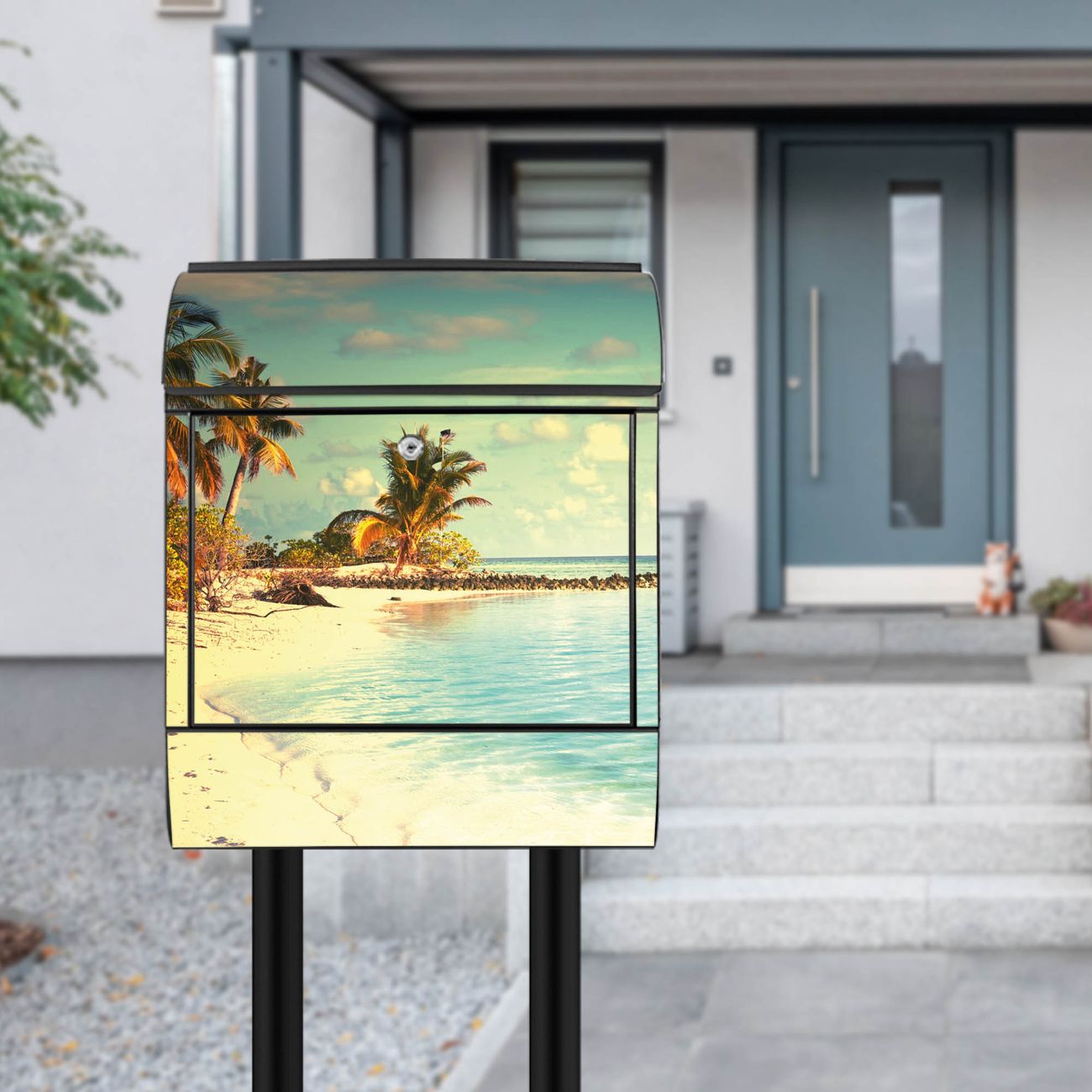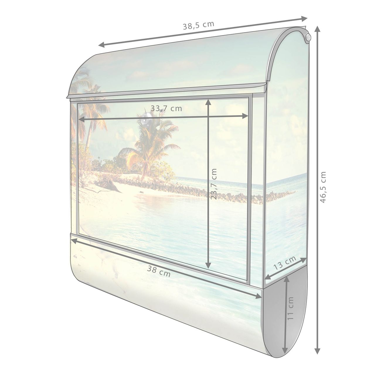 Der banjado Standbriefkasten mit Motiv Motiv Einsame Insel kombiniert großzügigen Stauraum mit modernem Design. Durch das geräumige Fach finden auch große A4-Sendungen problemlos Platz. Die integrierte Zeitungsrolle sorgt dafür, dass Tageszeitungen und Magazine separat und griffbereit untergebracht sind. Der pulverbeschichtete Standfuß ist farblich passend zum Briefkasten gestaltet und sorgt für ein stimmiges Gesamtbild. Mit dem individuellen Motiv setzen Sie einen optischen Akzent, der sowohl praktisch als auch dekorativ ist.