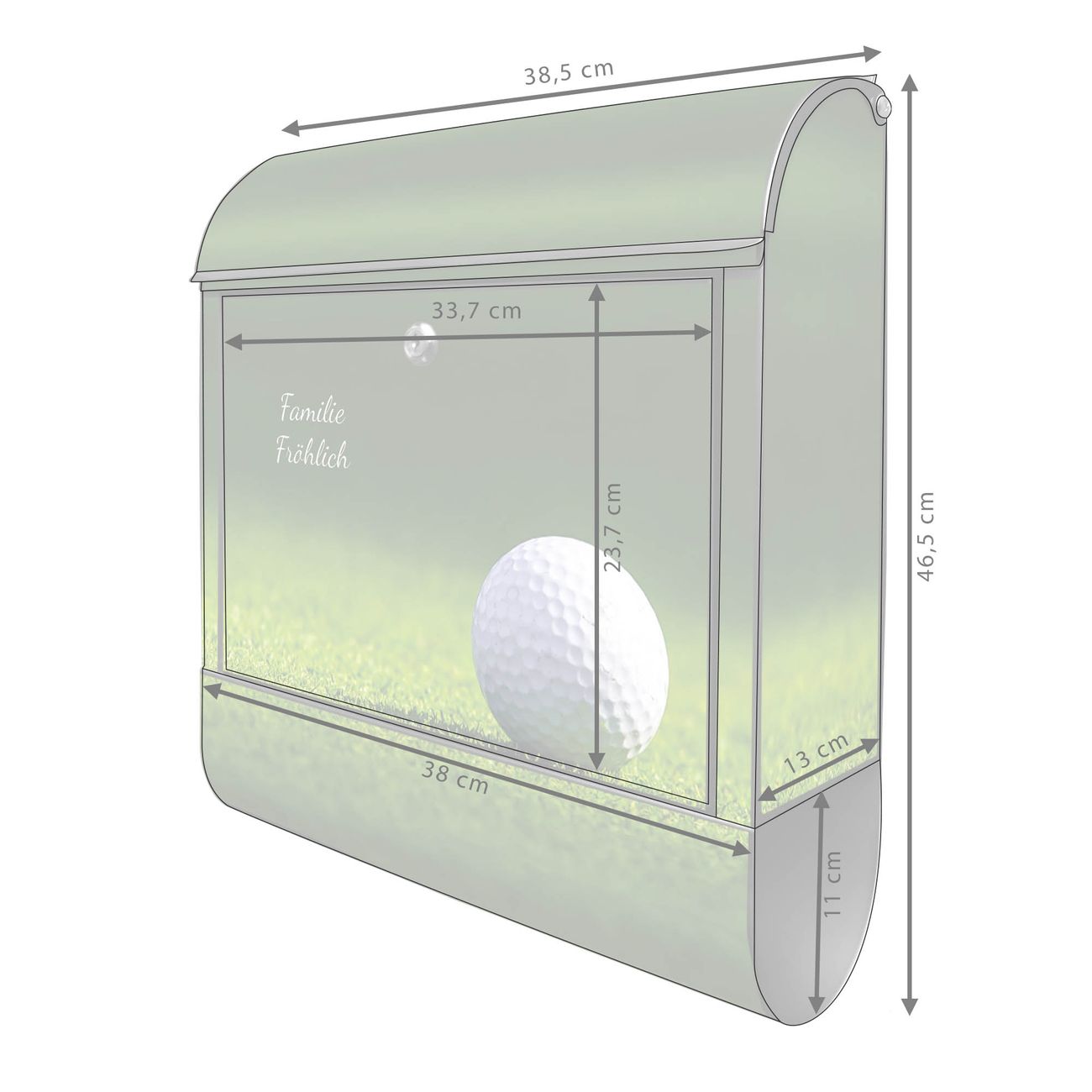 Der banjado Standbriefkasten mit Motiv Motiv Einsamer Golfball kombiniert großzügigen Stauraum mit modernem Design. Durch das geräumige Fach finden auch große A4-Sendungen problemlos Platz. Die integrierte Zeitungsrolle sorgt dafür, dass Tageszeitungen und Magazine separat und griffbereit untergebracht sind. Der pulverbeschichtete Standfuß ist farblich passend zum Briefkasten gestaltet und sorgt für ein stimmiges Gesamtbild. Mit dem individuellen Motiv setzen Sie einen optischen Akzent, der sowohl praktisch als auch dekorativ ist.