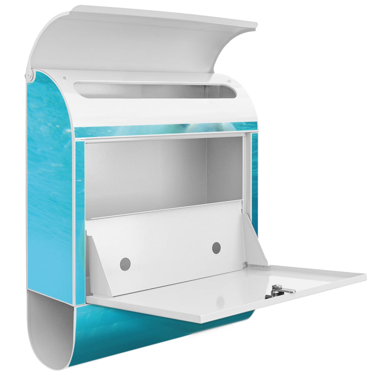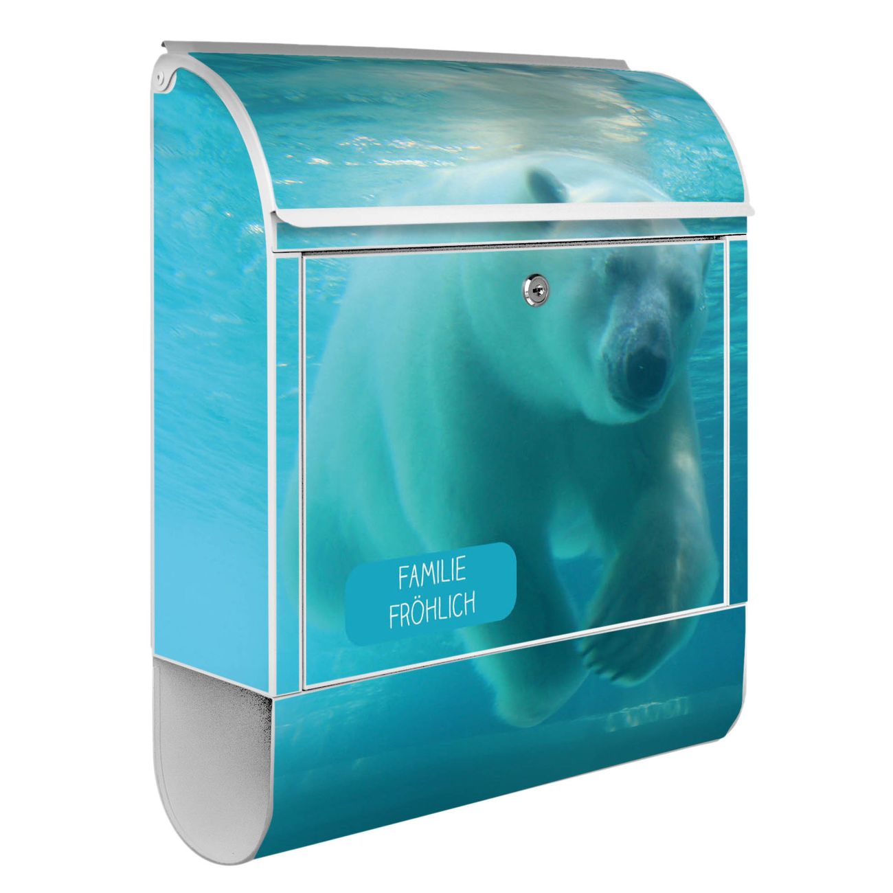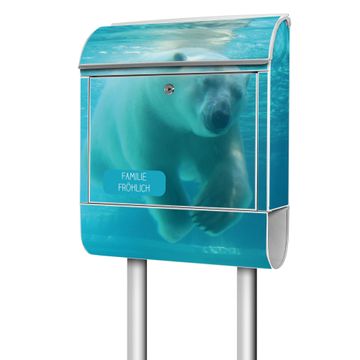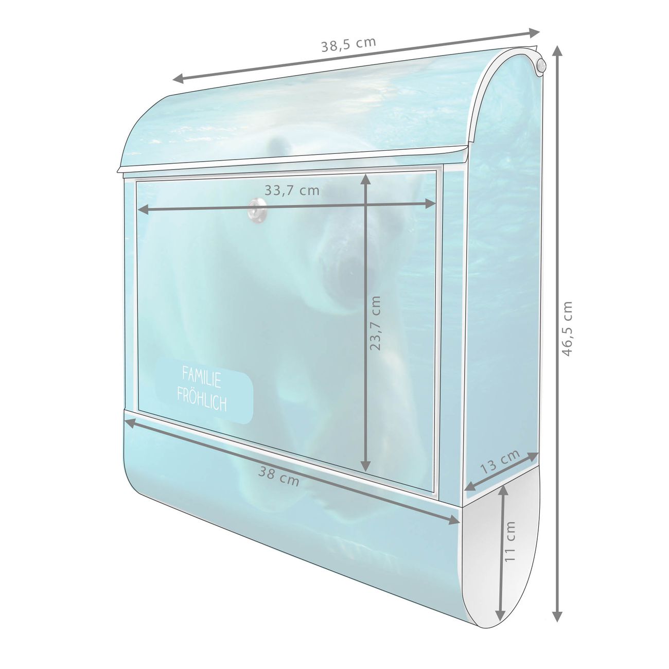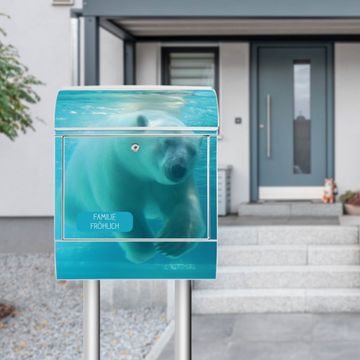 Der banjado Standbriefkasten mit Motiv Motiv Eisbär unter Wasser kombiniert großzügigen Stauraum mit modernem Design. Durch das geräumige Fach finden auch große A4-Sendungen problemlos Platz. Die integrierte Zeitungsrolle sorgt dafür, dass Tageszeitungen und Magazine separat und griffbereit untergebracht sind. Der pulverbeschichtete Standfuß ist farblich passend zum Briefkasten gestaltet und sorgt für ein stimmiges Gesamtbild. Mit dem individuellen Motiv setzen Sie einen optischen Akzent, der sowohl praktisch als auch dekorativ ist.