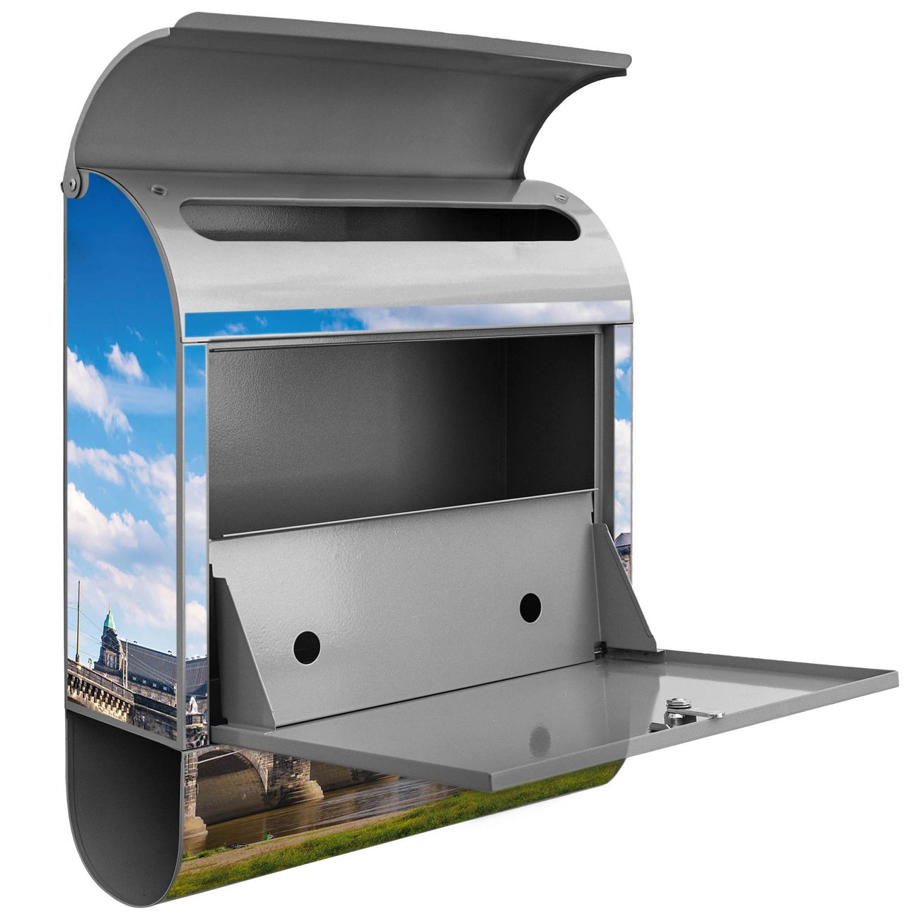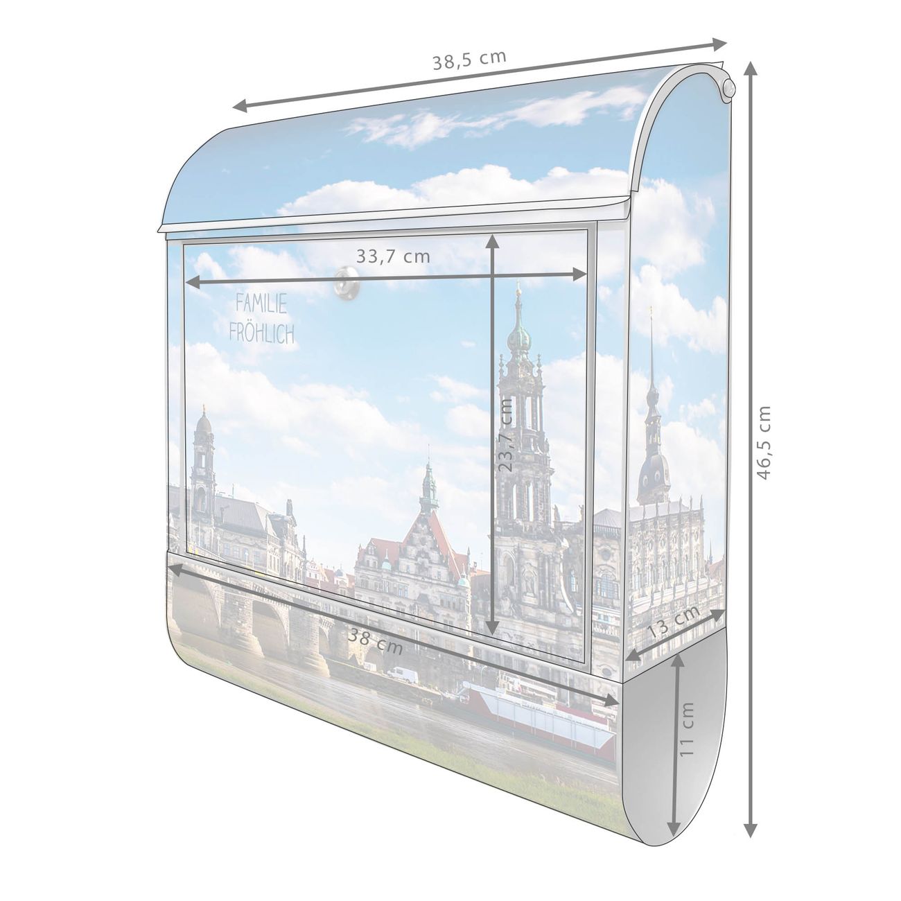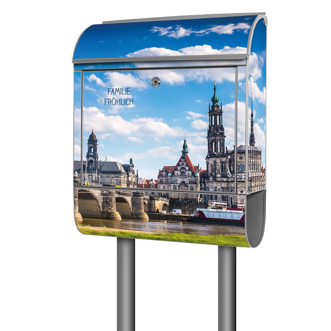 Der banjado Standbriefkasten mit Motiv Motiv Elbflorenz kombiniert großzügigen Stauraum mit modernem Design. Durch das geräumige Fach finden auch große A4-Sendungen problemlos Platz. Die integrierte Zeitungsrolle sorgt dafür, dass Tageszeitungen und Magazine separat und griffbereit untergebracht sind. Der pulverbeschichtete Standfuß ist farblich passend zum Briefkasten gestaltet und sorgt für ein stimmiges Gesamtbild. Mit dem individuellen Motiv setzen Sie einen optischen Akzent, der sowohl praktisch als auch dekorativ ist.