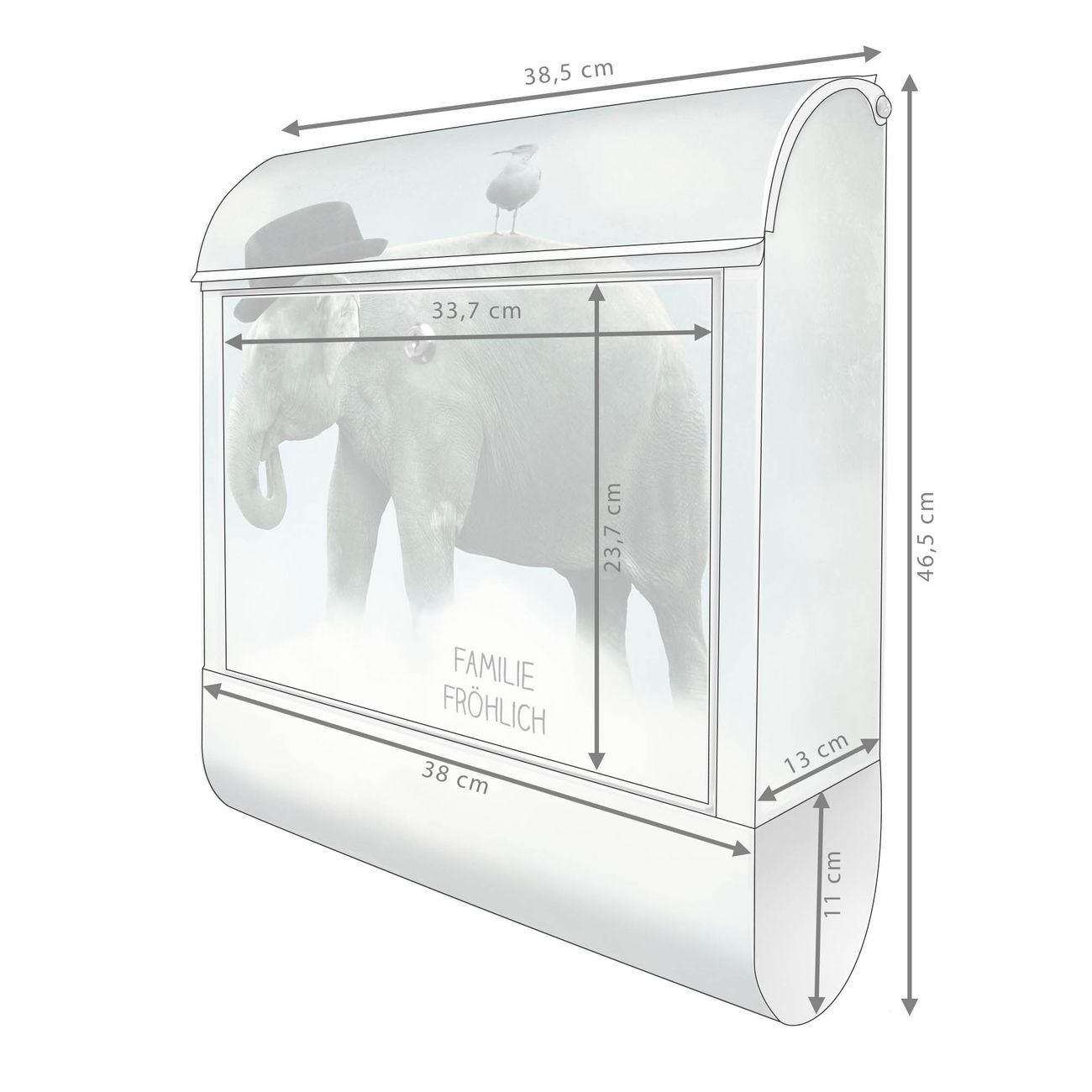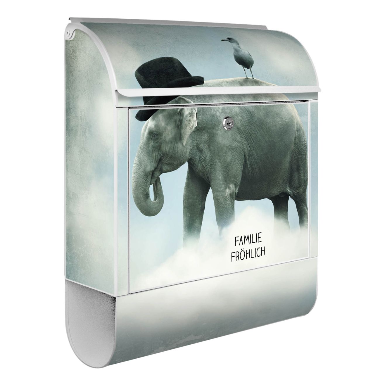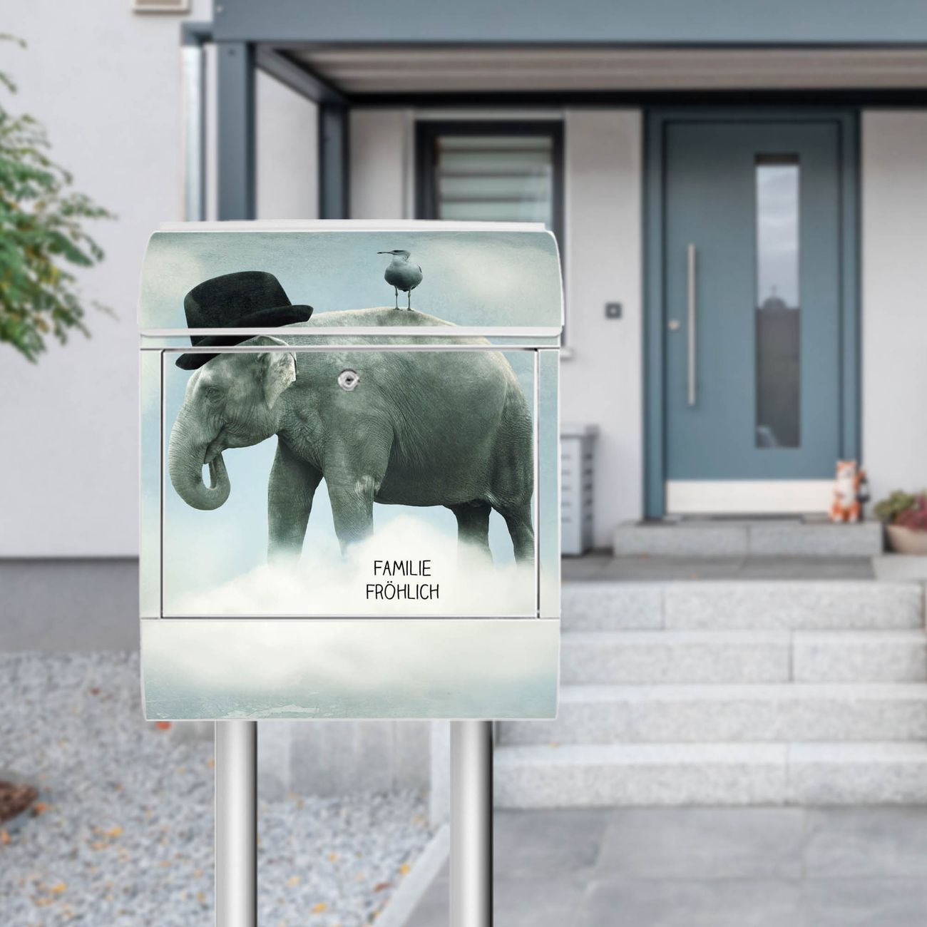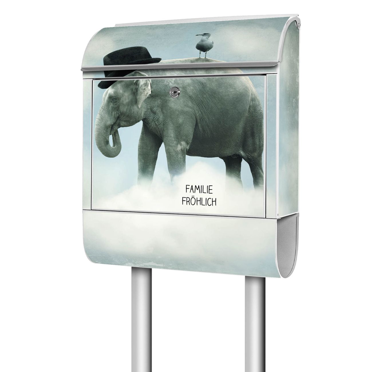 Standbriefkasten Stahl Elefant und Möwe